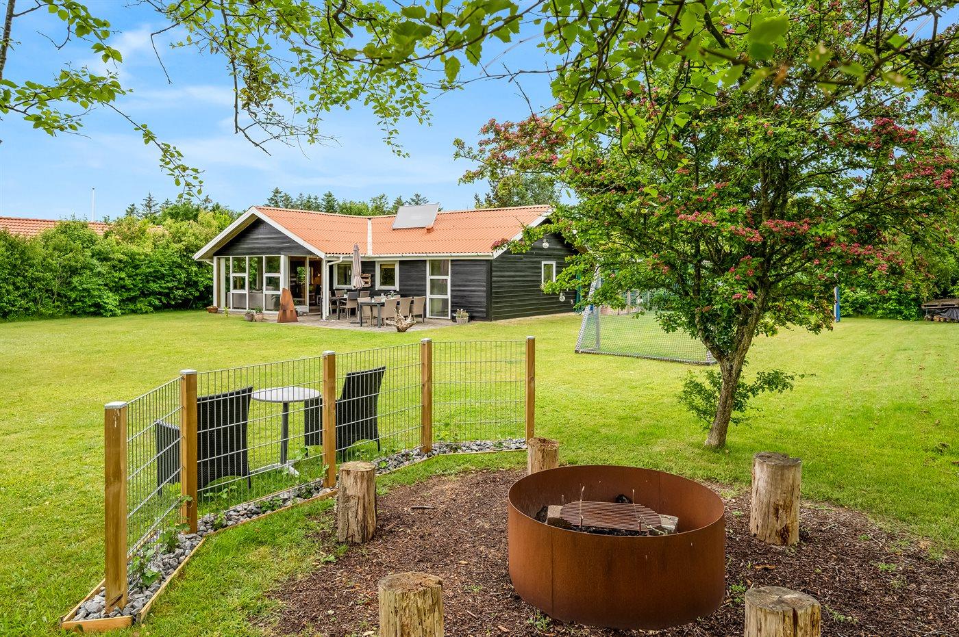 Udenfor er der en dejlig terrasse, som er omkranset at en stor, indhegnet have - dette er helt fantastisk, hvis du har hunde eller små børn med på ferien. I haven er der desuden anlagt en hyggelig bålplads, hvor både børn og voksne kan have en masse sjov.