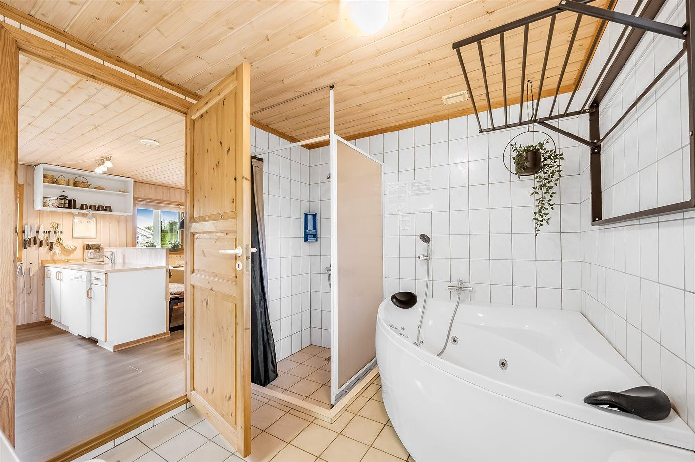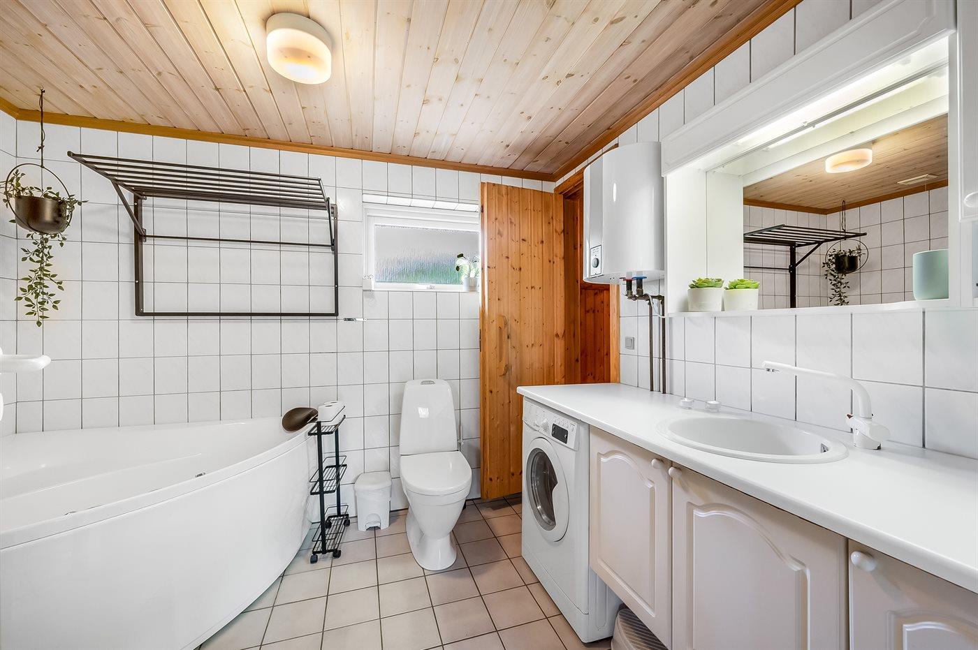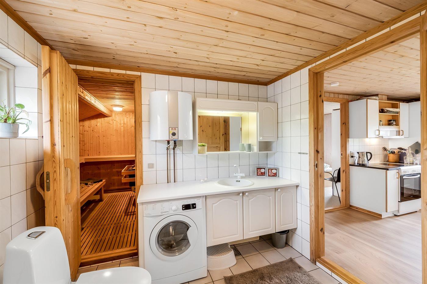 Der er 1 badeværelse med bruseniche og 1 toilet.. Der er gulvvarme på 1 badeværelse. I saunaen er der mulighed for afslapning.