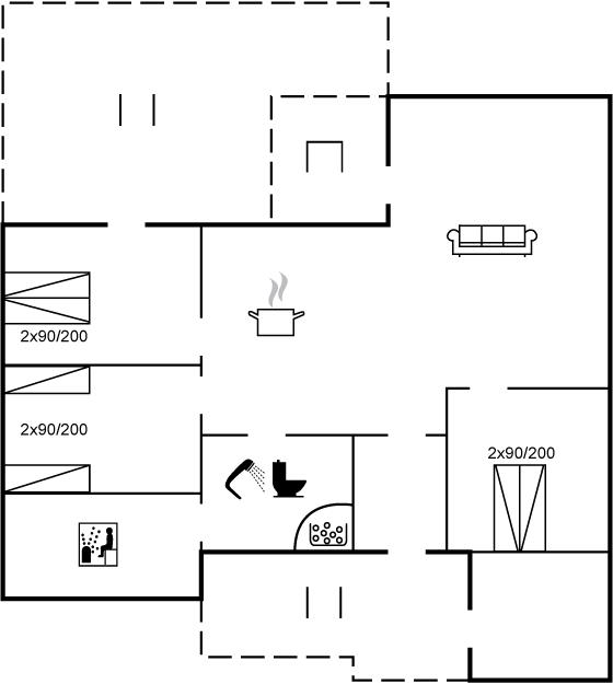 Der er i alt 3 soveværelser. Sovepladserne fordeler sig på: 4 sovepladser i dobbeltsenge. 2 sovepladser i enkeltsenge.
