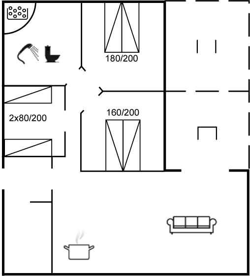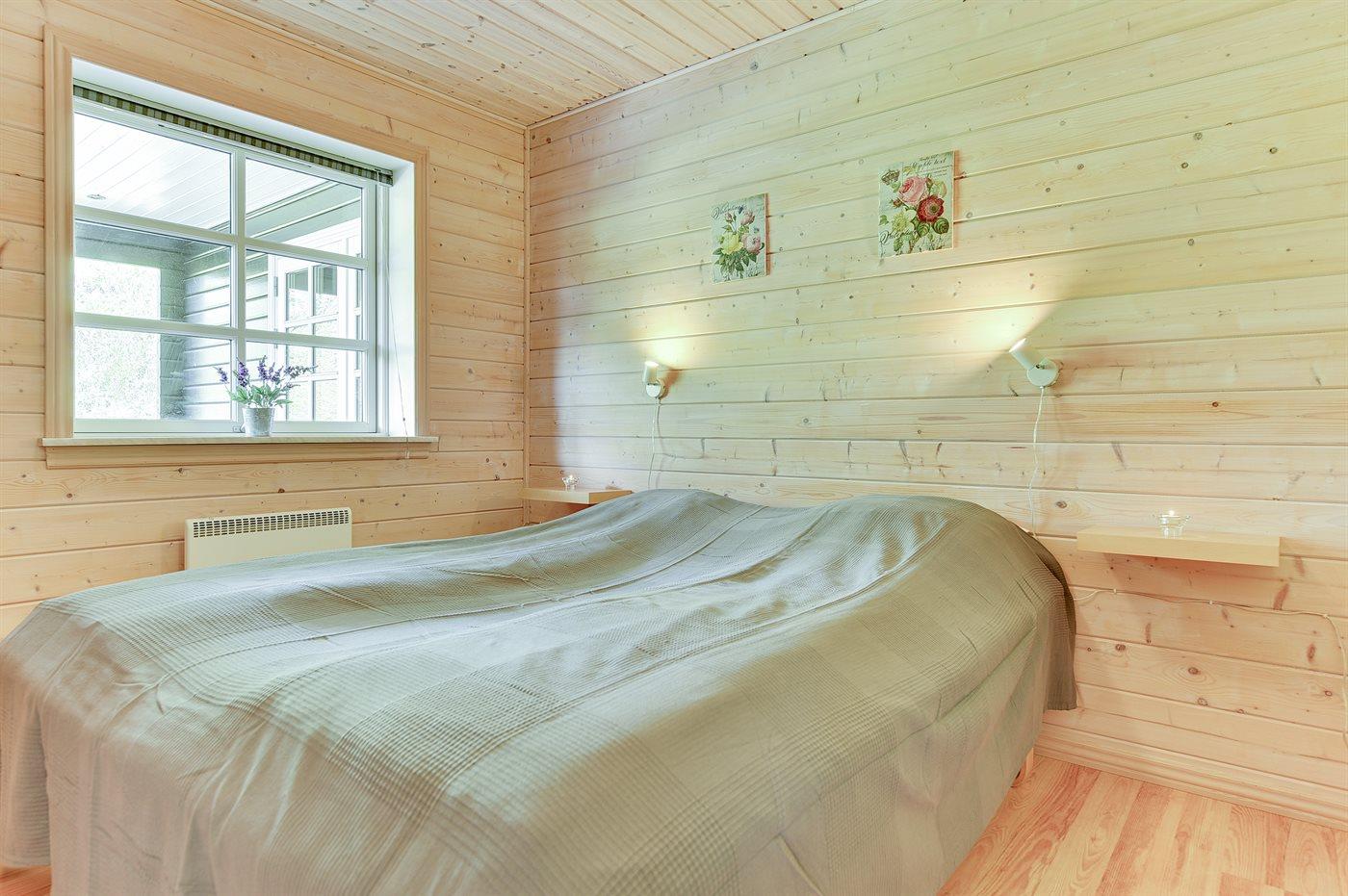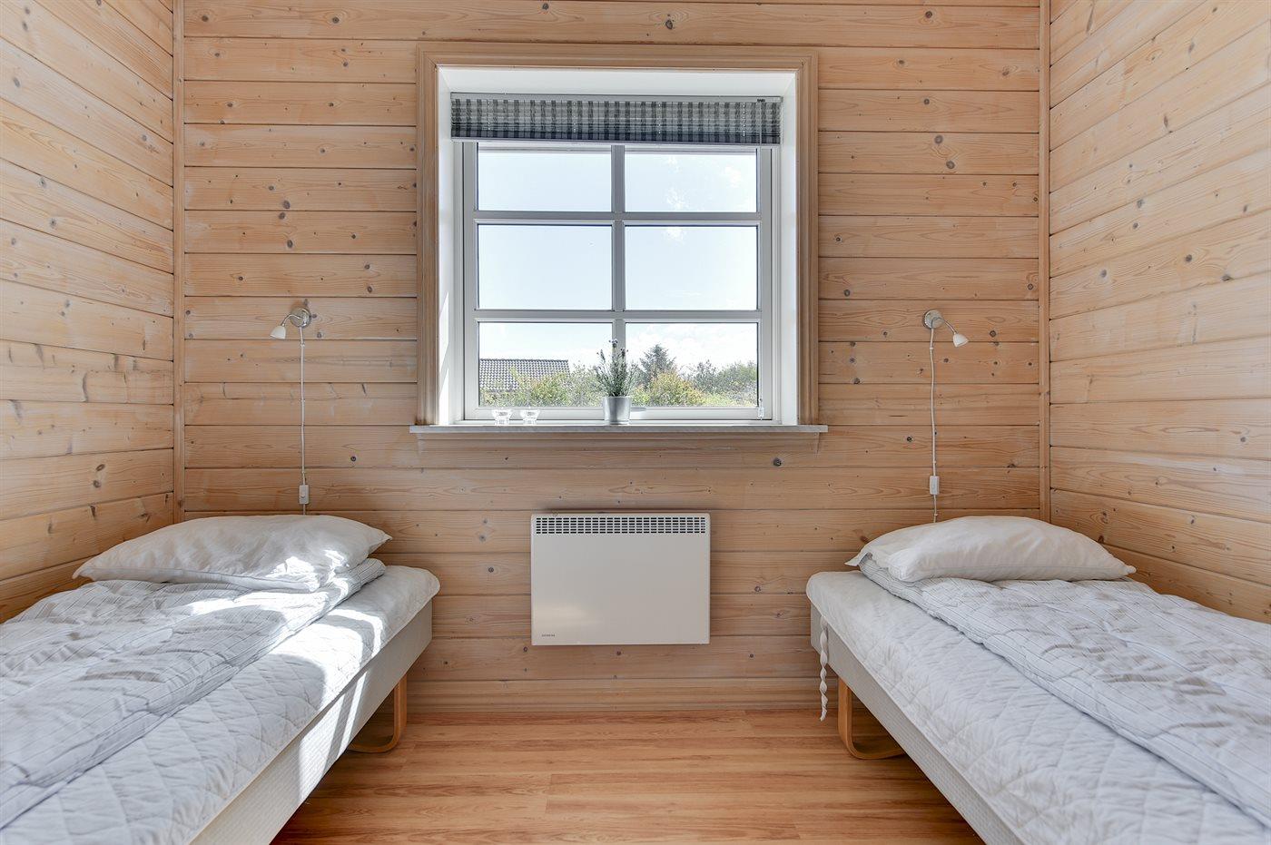 Der er i alt 3 soveværelser. Sovepladserne fordeler sig på: 4 sovepladser i dobbeltsenge. 2 sovepladser i enkeltsenge. Derudover er der 1 stk. barneseng.