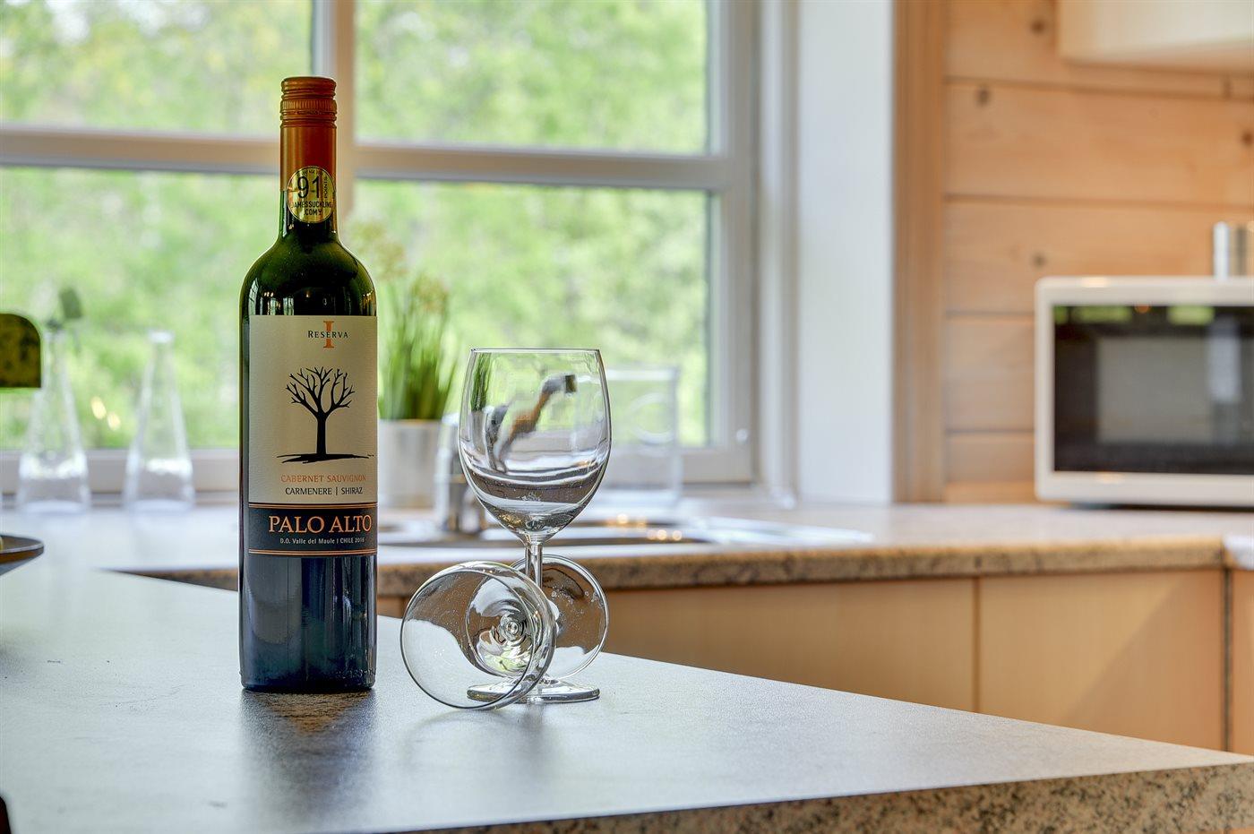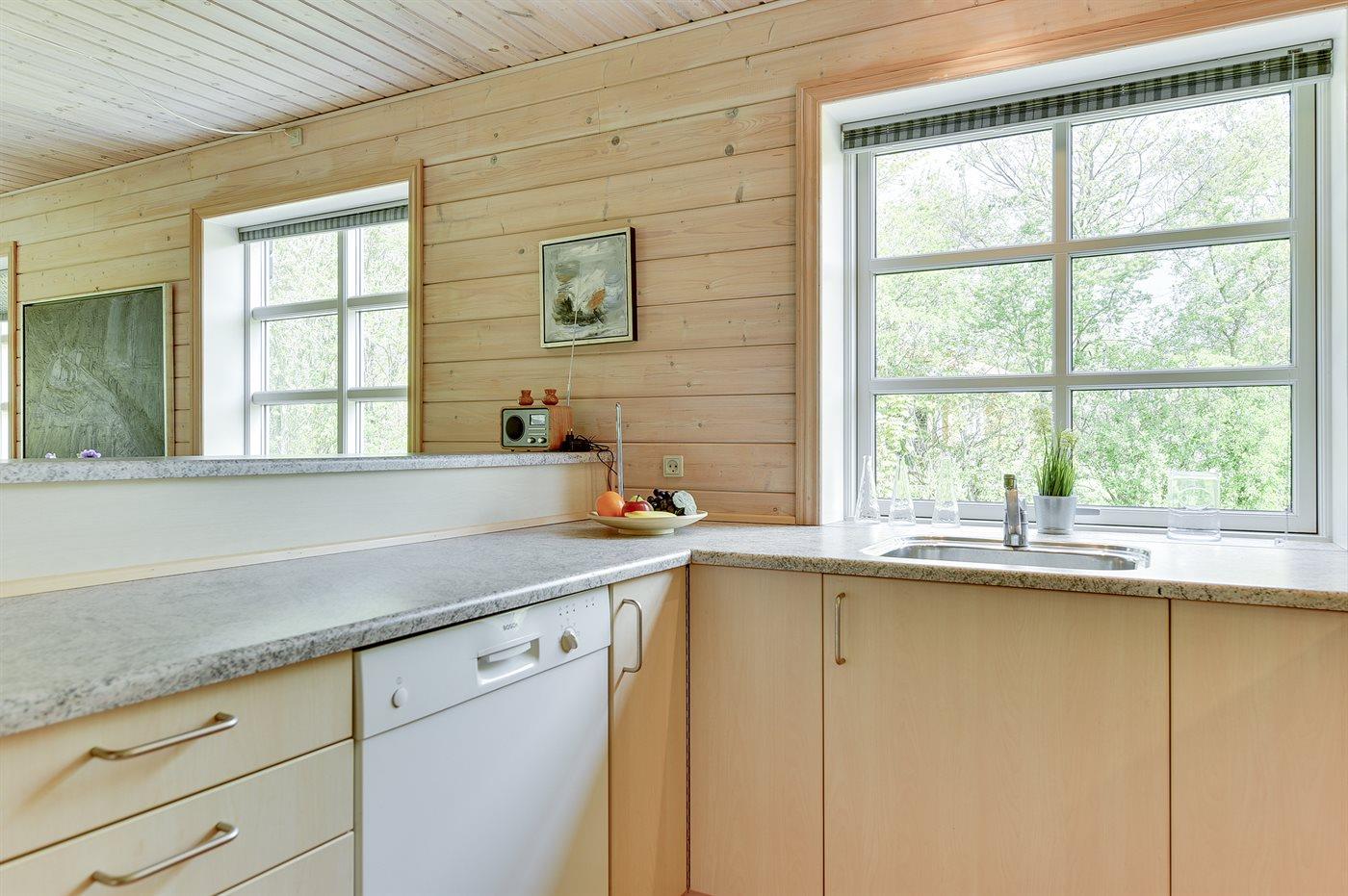 Køkkenet er udstyret med 1 køleskab. Der er 4 keramiske kogeplader, varmluftovn, mikrobølgeovn samt opvaskemaskine.