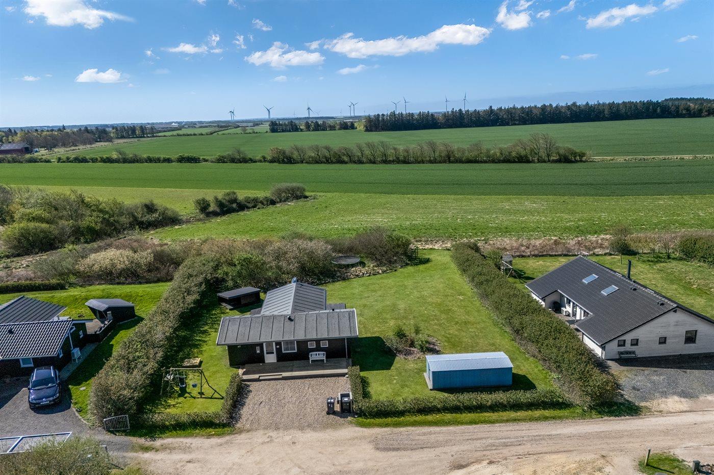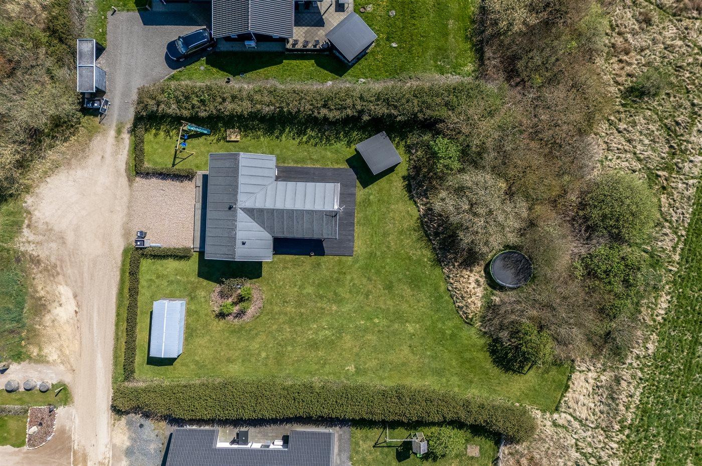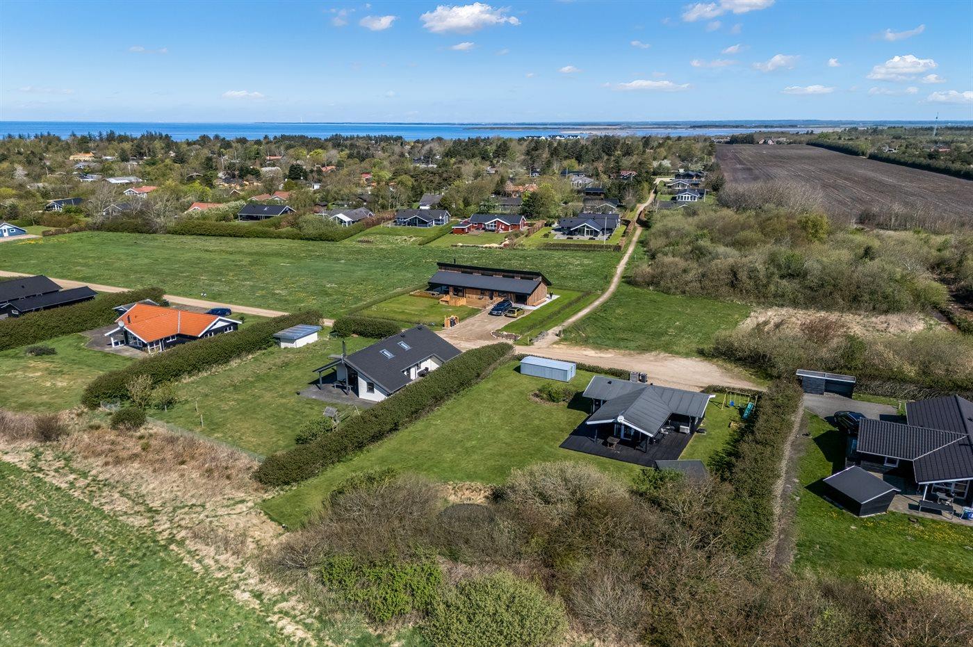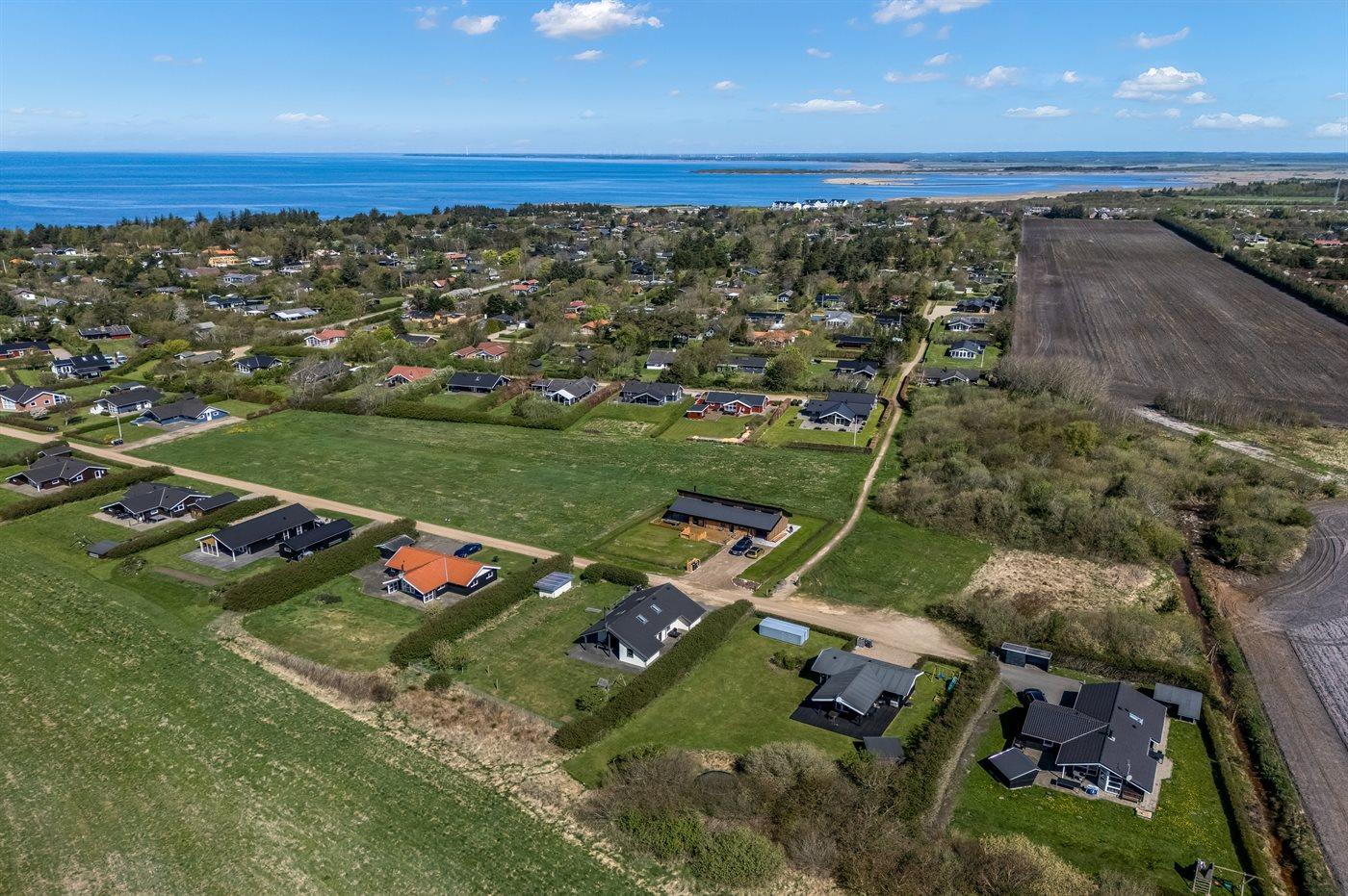 Ferieboligen er beliggende på en 850 m² stor havegrund. Der er 12500 m til havet. Der er 700 m til fjorden. Nærmeste forretning er beliggende i en afstand af 900 m. Til ferieboligen hører 50 m² terrasseareal. Desuden er der 18 m² overdækket terrasse. Gynge. Sandkasse. Trampolin. Shelter. Parkering ved ferieboligen.