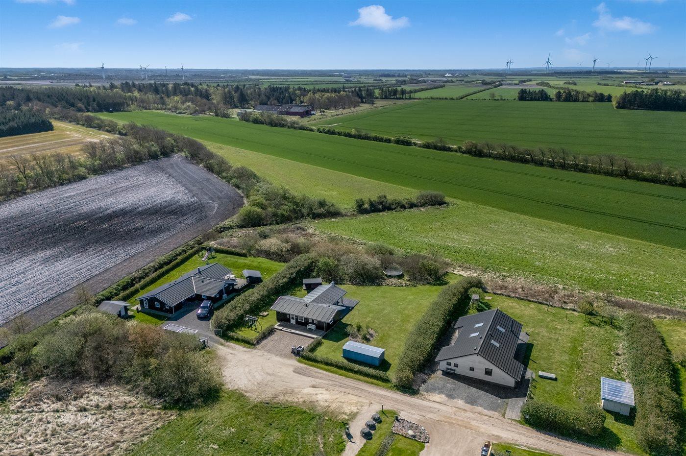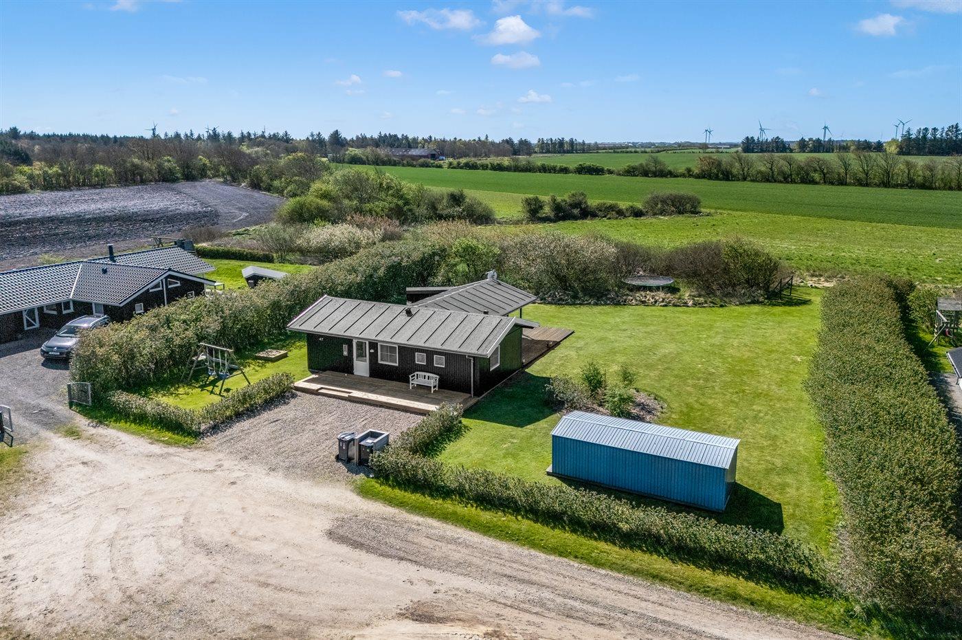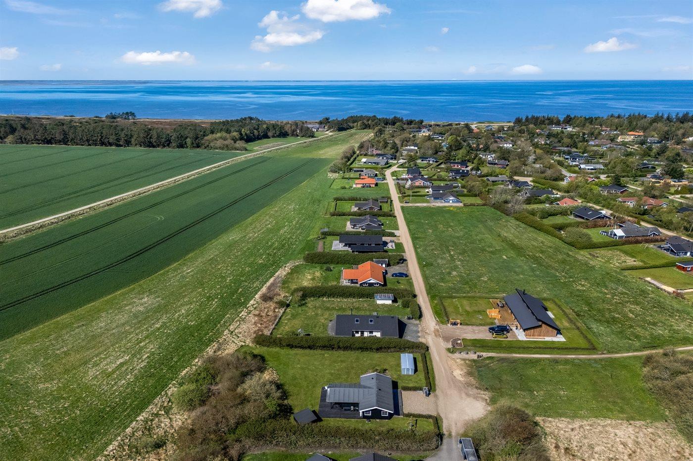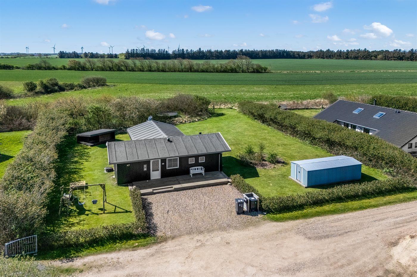 Ferieboligen er beliggende på en 850 m² stor havegrund. Der er 12500 m til havet. Der er 700 m til fjorden. Nærmeste forretning er beliggende i en afstand af 900 m. Til ferieboligen hører 50 m² terrasseareal. Desuden er der 18 m² overdækket terrasse. Gynge. Sandkasse. Trampolin. Shelter. Parkering ved ferieboligen.