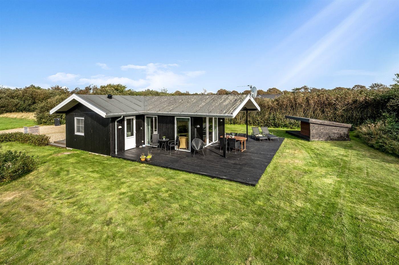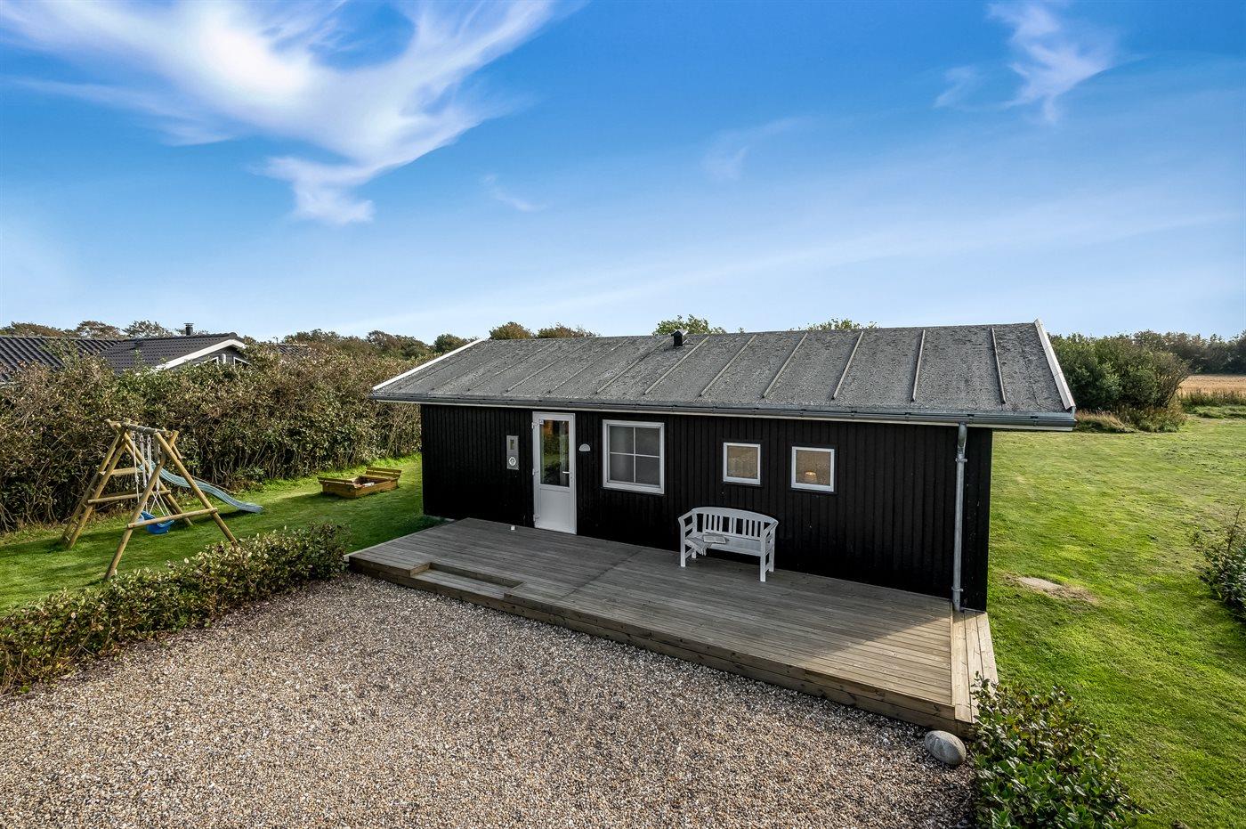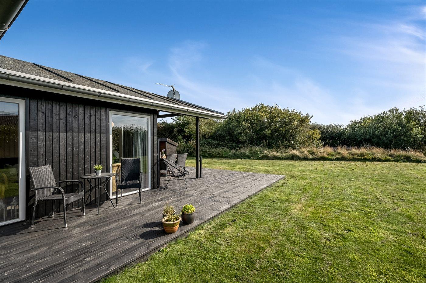 Hyggeligt sommerhus nær Ringkøbing Fjord med terrasse, have og gode muligheder for natur og fiskeri.