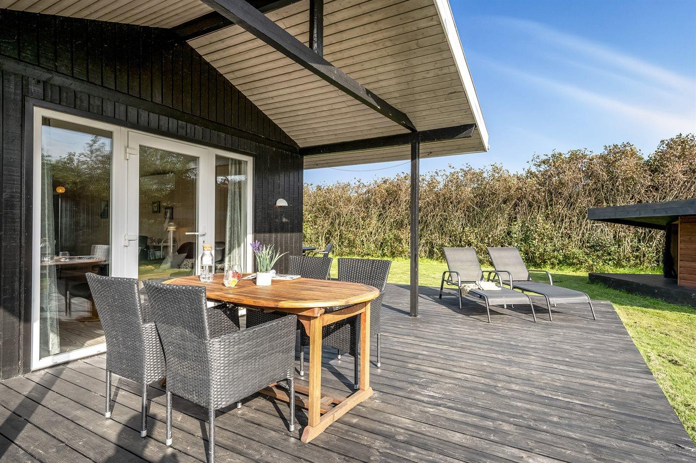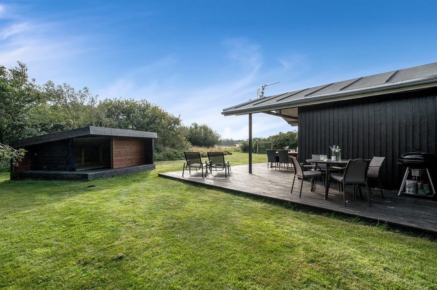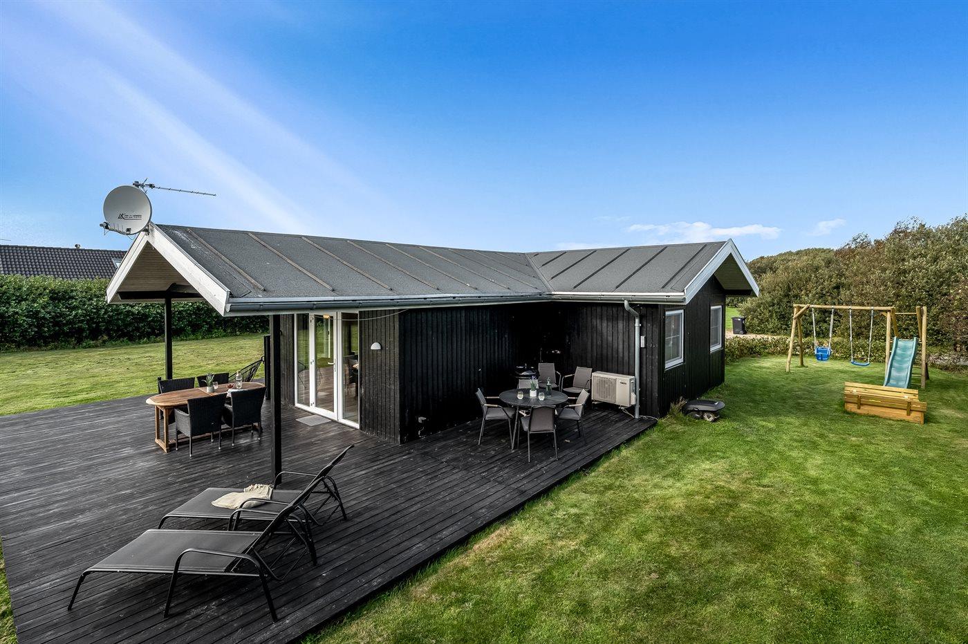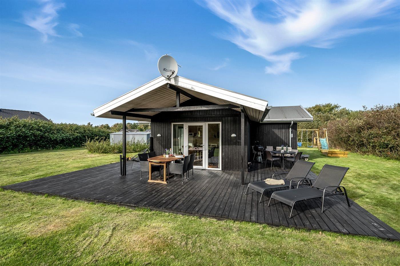 Hyggeligt sommerhus nær Ringkøbing Fjord med terrasse, have og gode muligheder for natur og fiskeri.