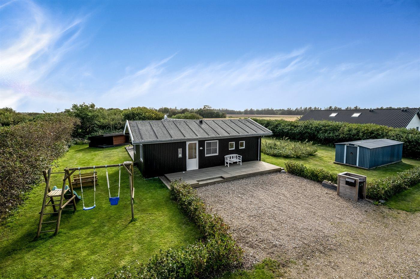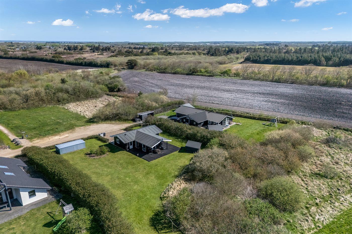 Dette hyggeligt indrettede sommerhus ligger på en ugenert have-/skovgrund for enden af en lukket vej - kun få hundrede meter fra Ringkøbing Fjord, hvor der er gode surf- og fiskemuligheder. Området inviterer også til lange gåture i den fantastiske natur med dets rige fugleliv.