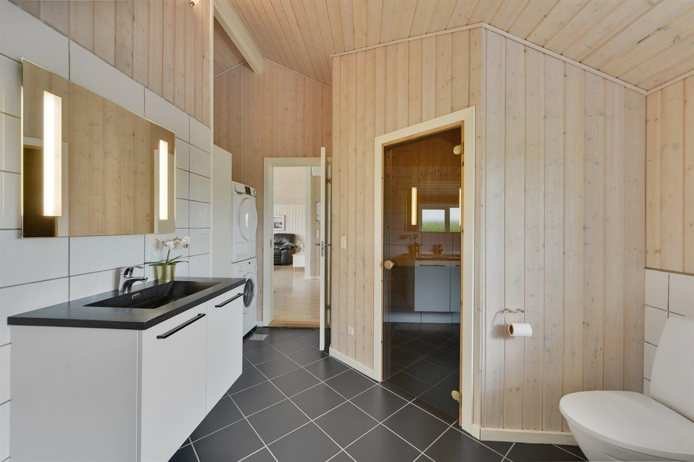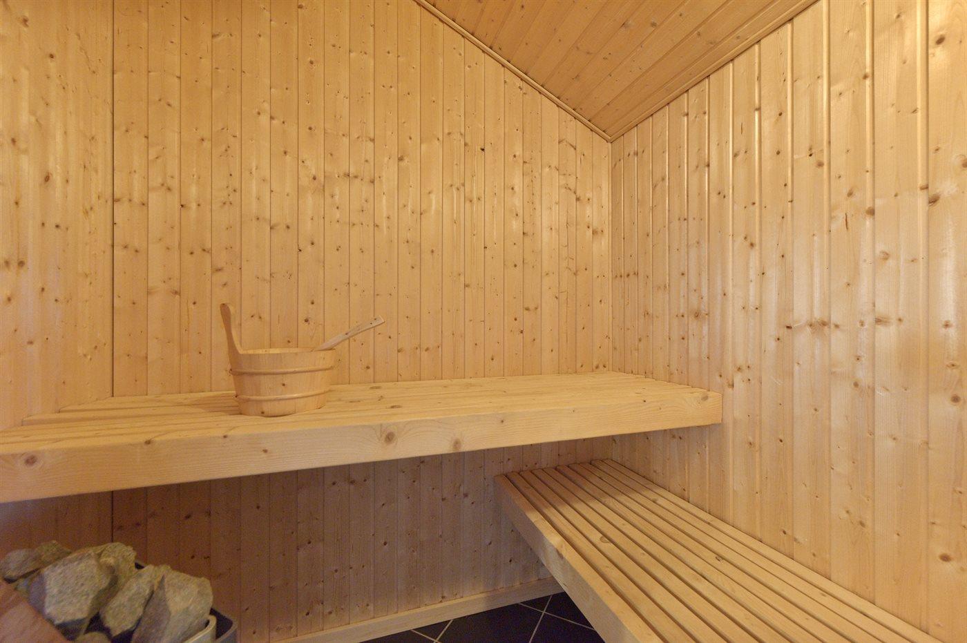 Der er 2 badeværelser med bruseniche og 2 toiletter. Der er gulvvarme på 2 badeværelser. I saunaen er der mulighed for afslapning.