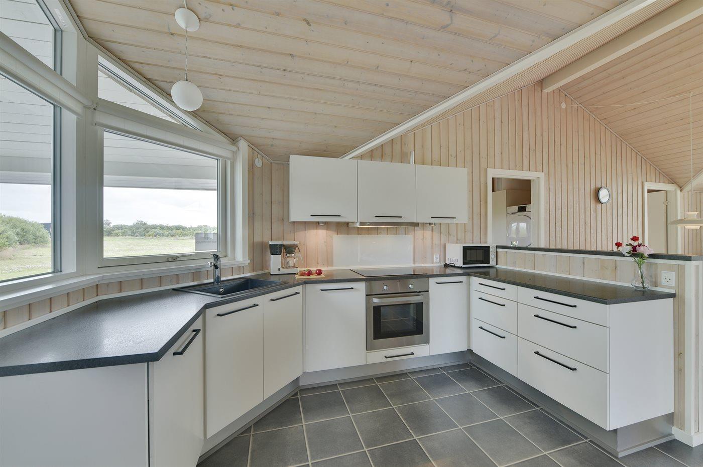 Køkkenet er udstyret med 1 køleskab. Der er 4 induktionskogeplader, varmluftovn, mikrobølgeovn samt opvaskemaskine.