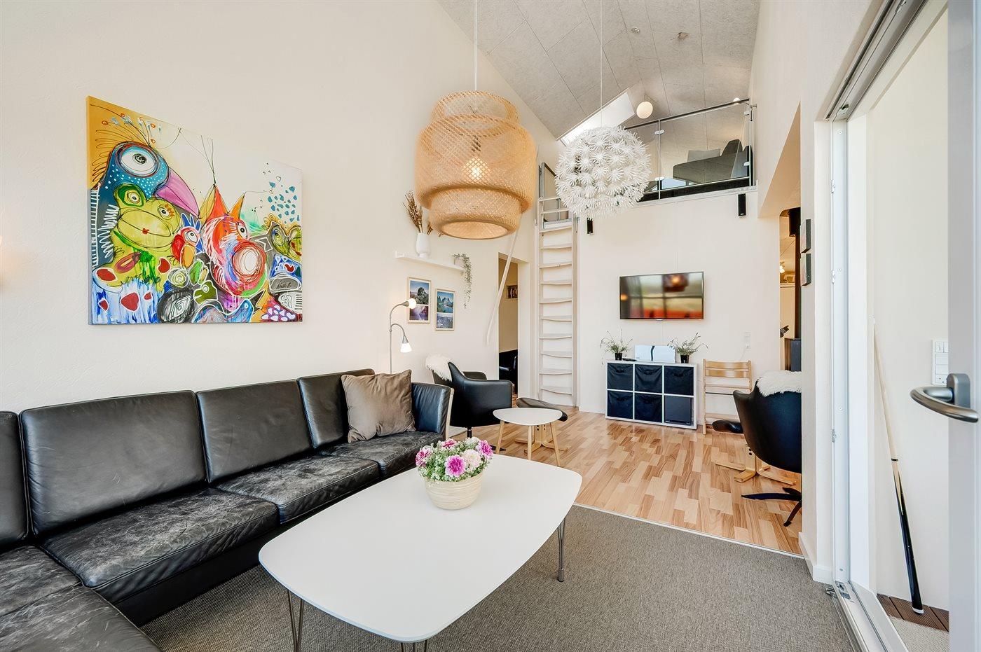 Flot sommerhus med spa, aktivitetsrum og naturgrund nær bådehavn og legeplads i Tarm.