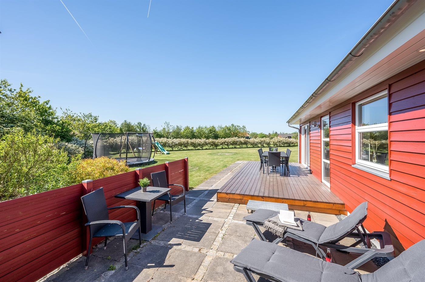 Ferieboligen er beliggende på en 1280 m² stor naturgrund. Der er 12000 m til havet. Der er 800 m til fjorden. Nærmeste forretning er beliggende i en afstand af 700 m. Til ferieboligen hører 90 m² terrasseareal. Gynge. Trampolin. Rutchebane. Der er carport til rådighed. Der er installeret stik til opladning af elbil. Med 11 kW ladeeffekt. Parkering ved ferieboligen.