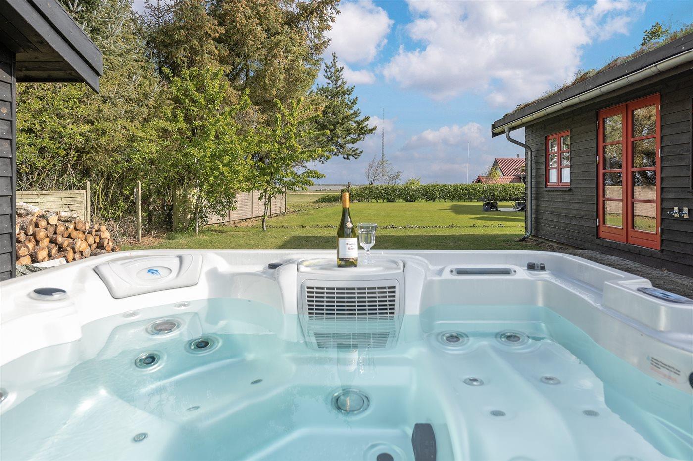 Ved Skaven Strand finder man denne lille perle af et sommerhus, som ligger på en af havegrund, hvoraf halvdelen er lukket helt af. Til huset hører en udendørs spa, som kan benyttes i tidsrummet fra uge 15 til og med uge 45. Lige meget om det er sommer eller vinter er der altid noget at give sig til. Man kan gå en tur langs fjorden eller dyppe tæerne ved stranden, som ikke ligger langt fra huset. Nyd fuglelivet ved Skjern Å og Enge, eller prøve en anderledes rundvisning på Stauning Whisky destilleri. Ønsker man blot at sidde og nyde solnedgangen over fjorden er dette det helt rigtige huset.