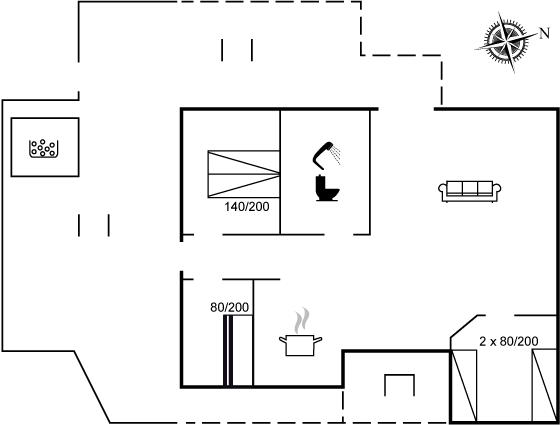 Køkkenet er udstyret med 1 køleskab. Der er 4 induktionskogeplader, varmluftovn, mikrobølgeovn samt opvaskemaskine.