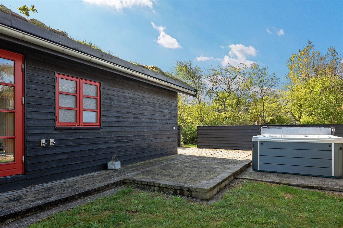 Ferieboligen er beliggende på en 852 m² stor havegrund. Grunden er indhegnet. Der er 13000 m til havet. Der er 100 m til fjorden. Nærmeste forretning er beliggende i en afstand af 300 m. Til ferieboligen hører 57 m² terrasseareal. Desuden er der 6 m² overdækket terrasse. Gynge. Sandkasse. Udendørs bruser med varmt og koldt vand. Der findes Weber kuglegrill og Weber gasgrill. Parkering ved ferieboligen.