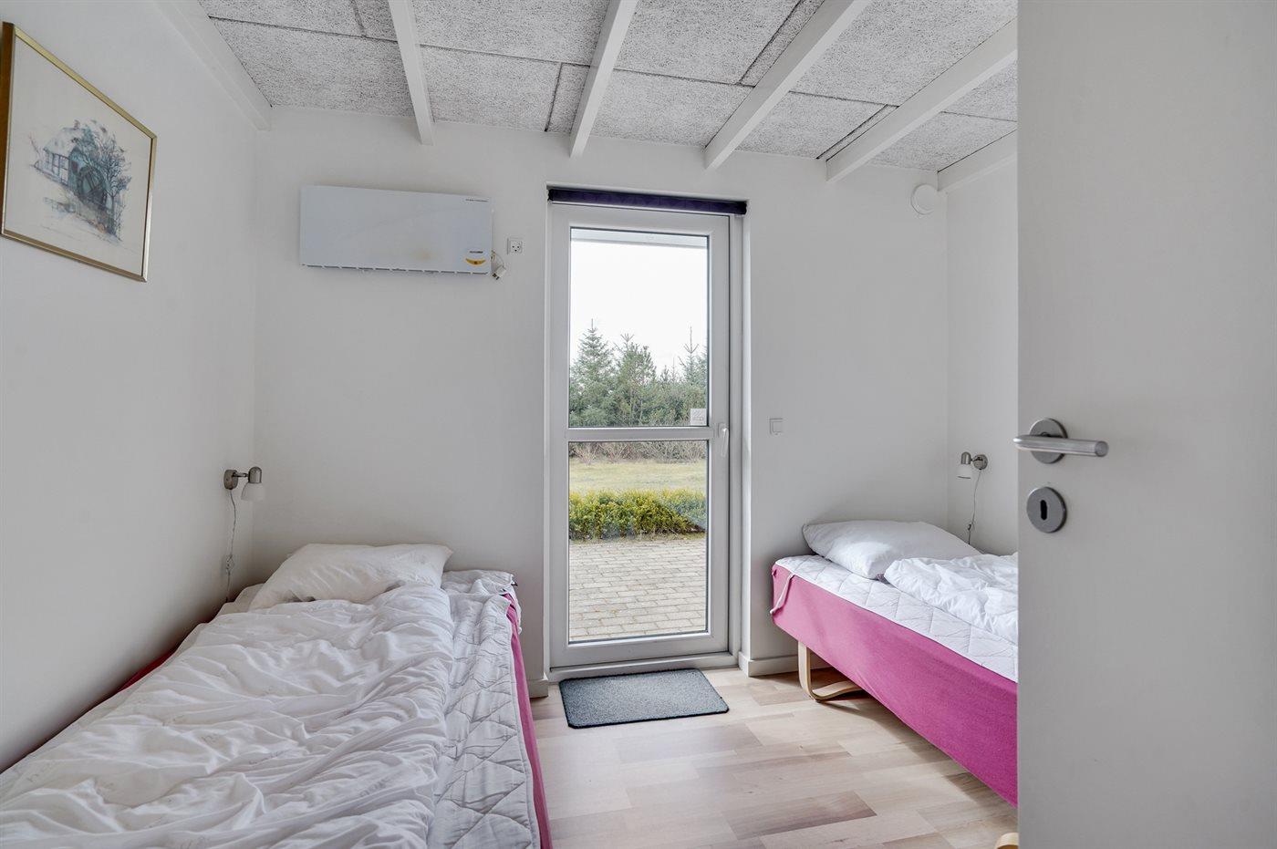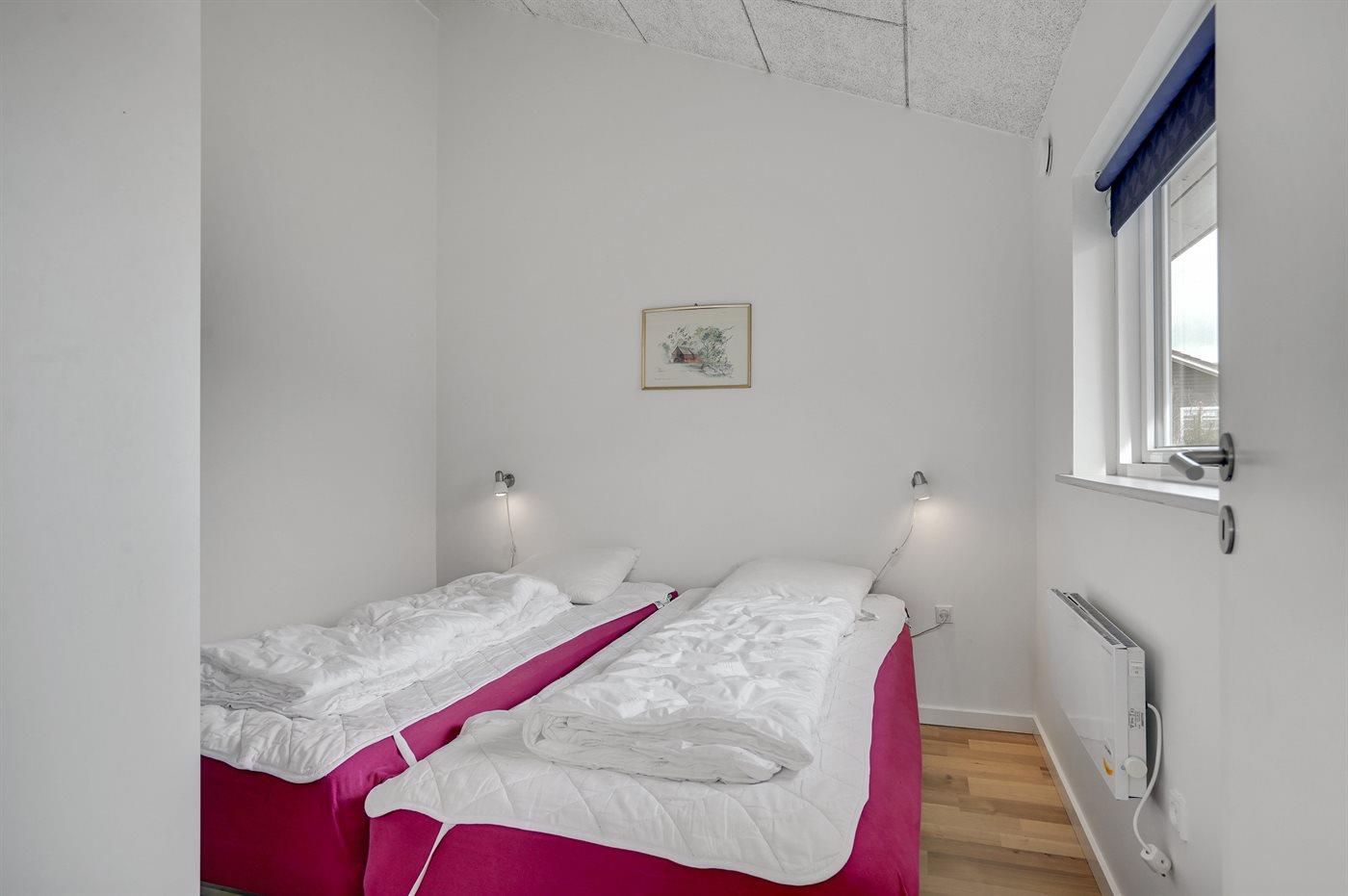 Der er i alt 4 soveværelser. Sovepladserne fordeler sig på: 6 sovepladser i dobbeltsenge. 2 sovepladser i enkeltsenge. Derudover er der 1 stk. barneseng.
