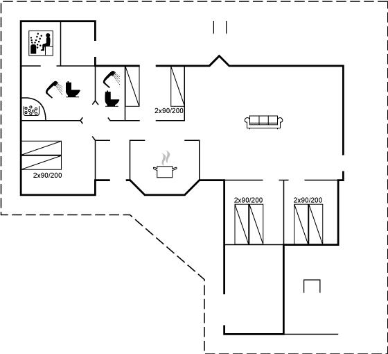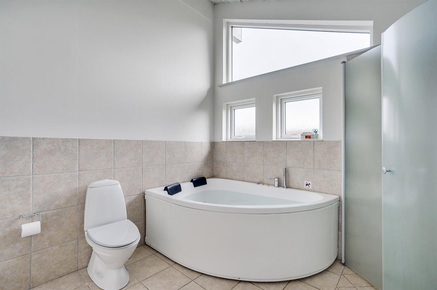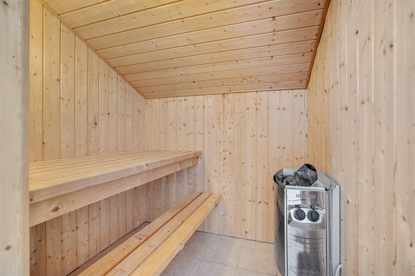 Der er 2 badeværelser med bruseniche og 2 toiletter. Der er gulvvarme på 2 badeværelser. I saunaen er der mulighed for afslapning.