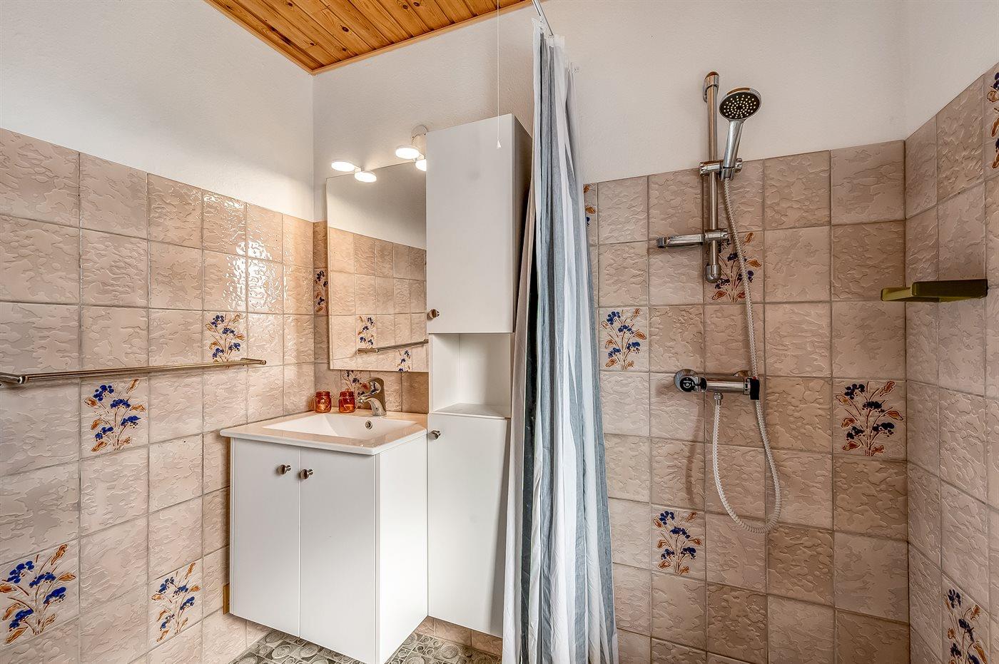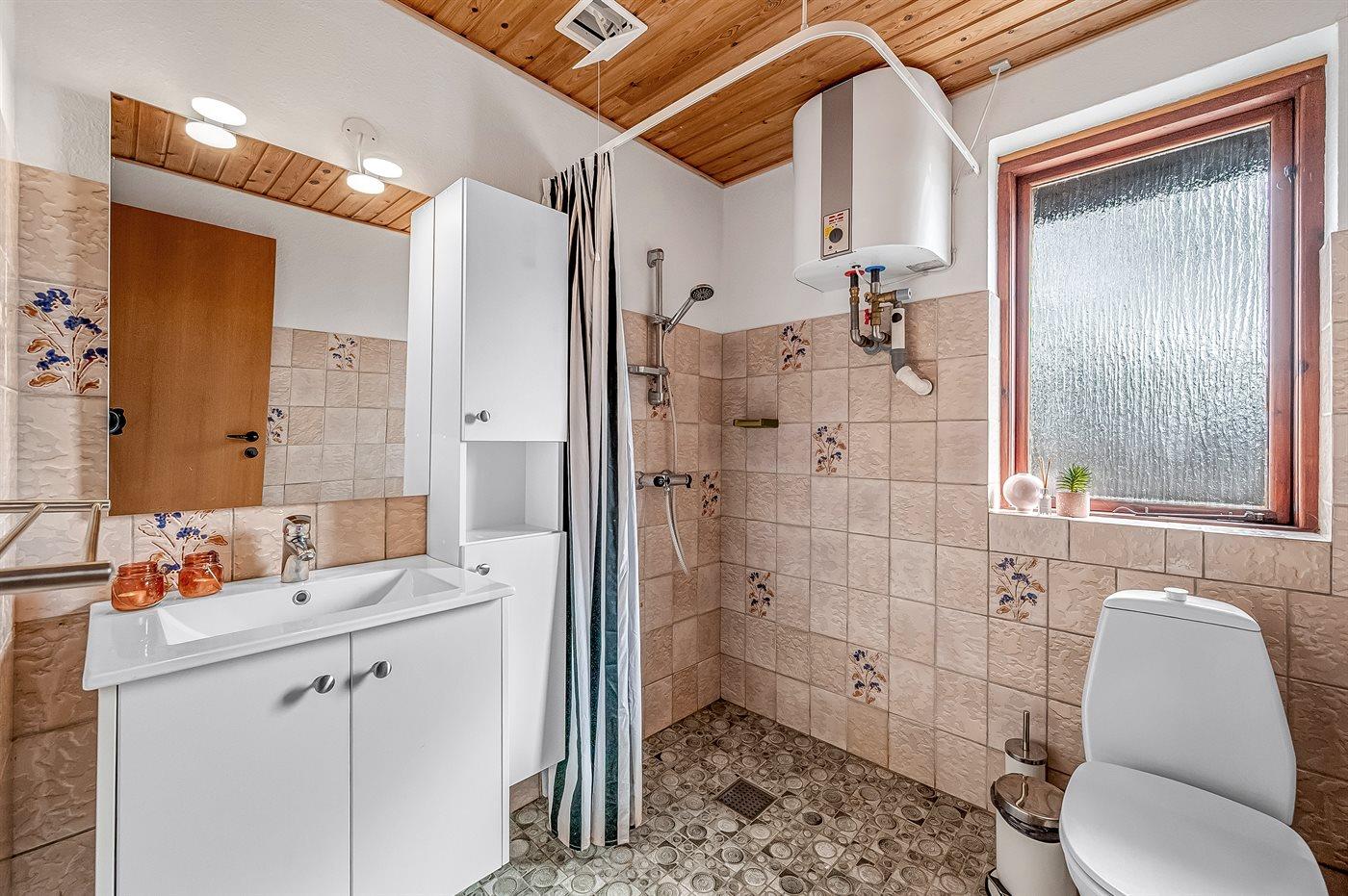 Der er 1 badeværelse med bruseniche og 1 toilet.. Der er gulvvarme på 1 badeværelse.