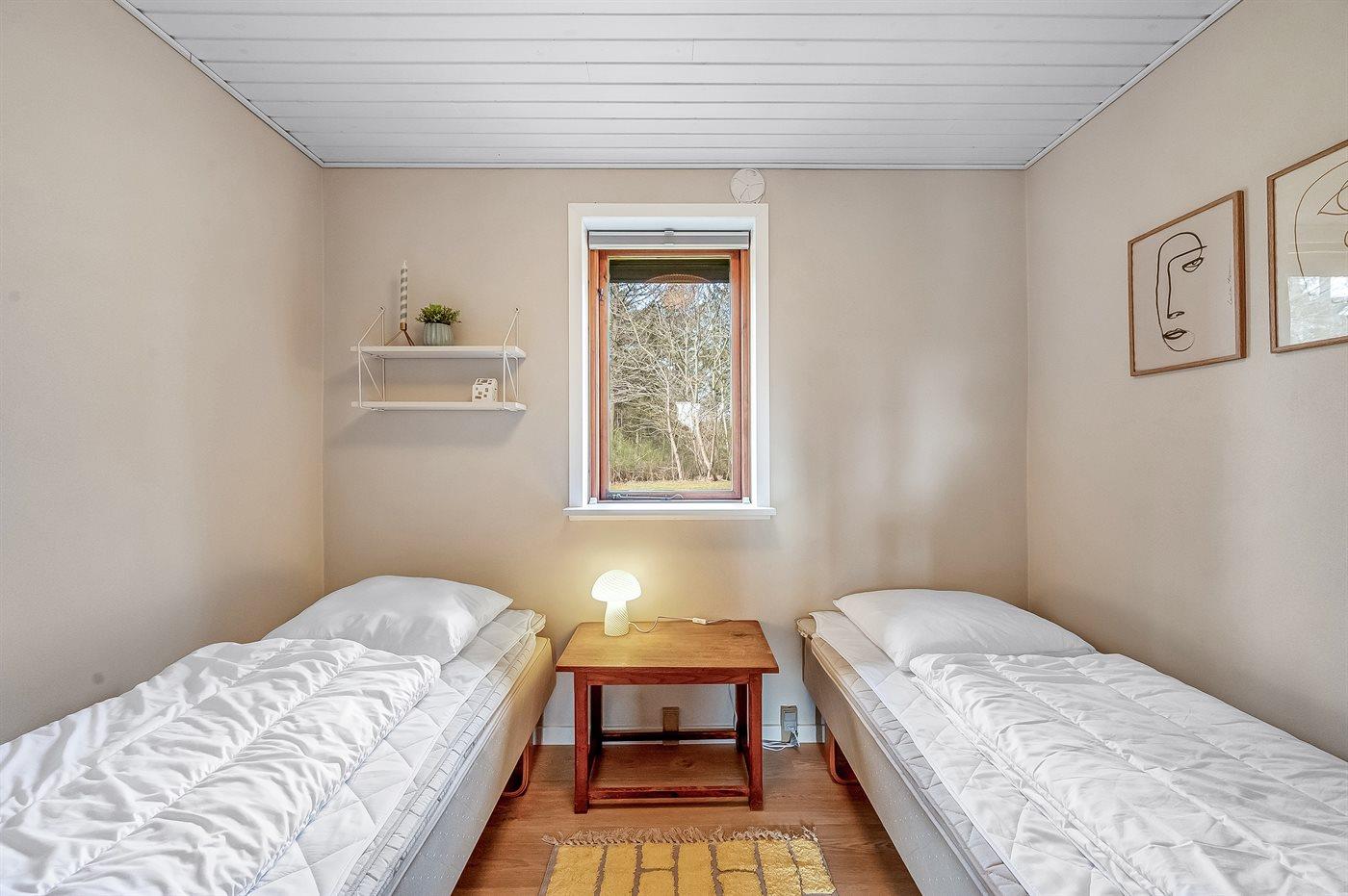 Der er i alt 3 soveværelser. Sovepladserne fordeler sig på: 2 sovepladser i dobbeltseng. 2 sovepladser i enkeltsenge. 2 sovepladser i køjeseng. Derudover er der 1 stk. barneseng.