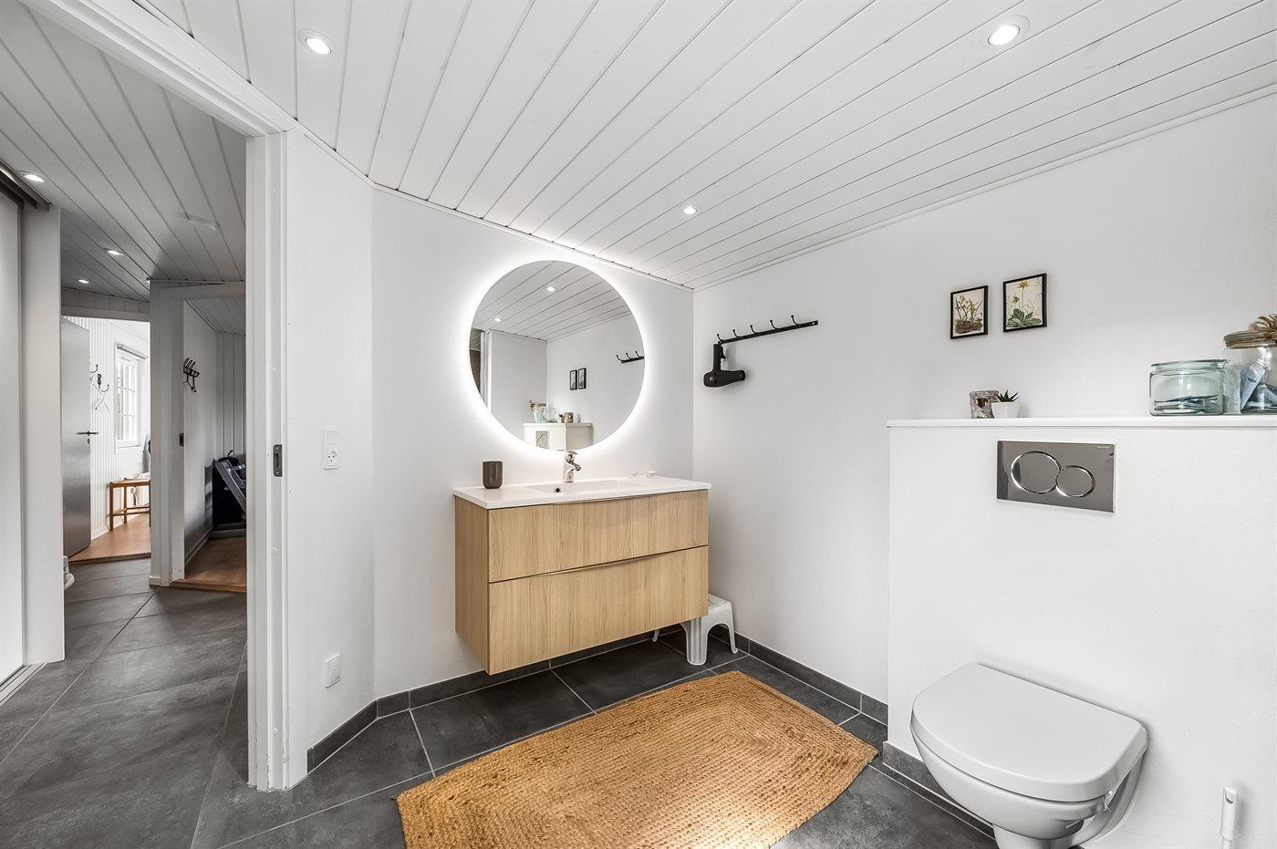 Der er 1 badeværelse med bruseniche og 2 toiletter, heraf 1 gæstetoilet. Der er gulvvarme på 1 badeværelse.