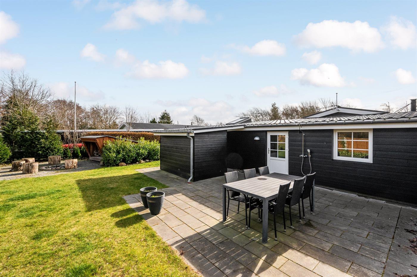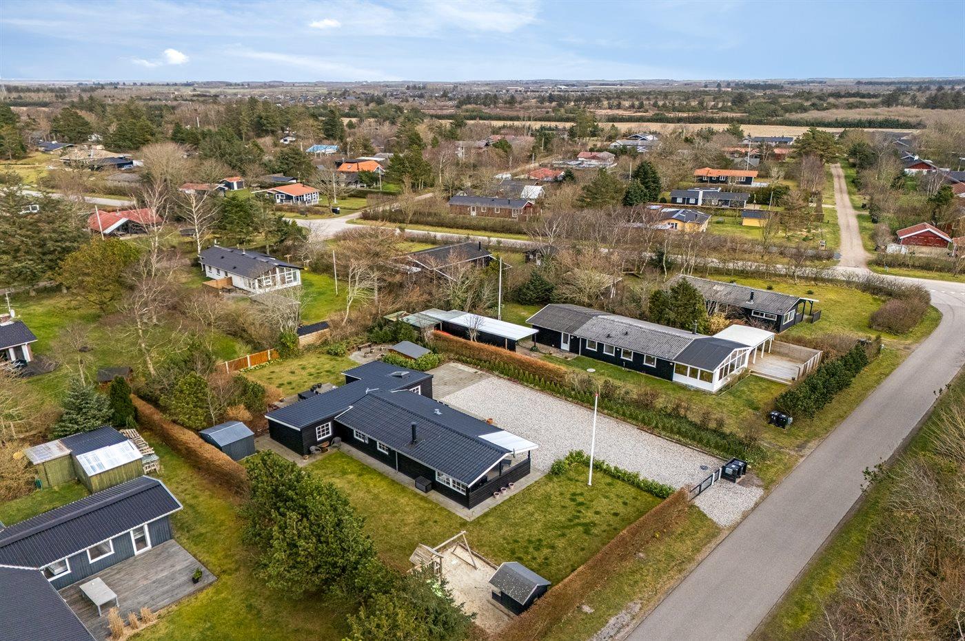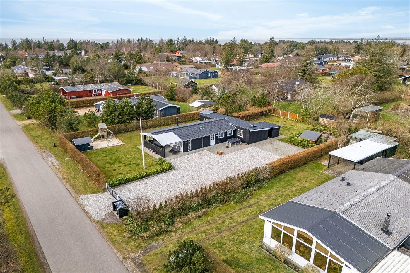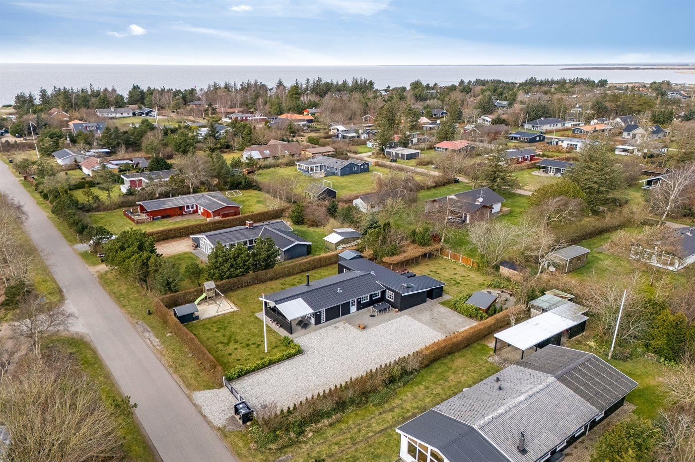 Ferieboligen er beliggende på en 963 m² stor naturgrund. Grunden er indhegnet. Der er 300 m til fjorden. Nærmeste forretning er beliggende i en afstand af 1000 m. Til ferieboligen hører åbent terrasseareal. Desuden er der overdækket terrasse. Gynge. Sandkasse. Legehus. Rutchebane. Bålsted. Shelter. Udendørs bruser. Parkering ved ferieboligen.