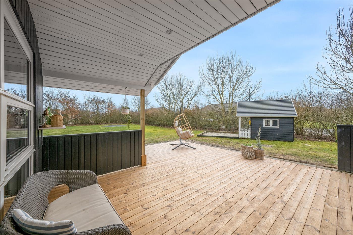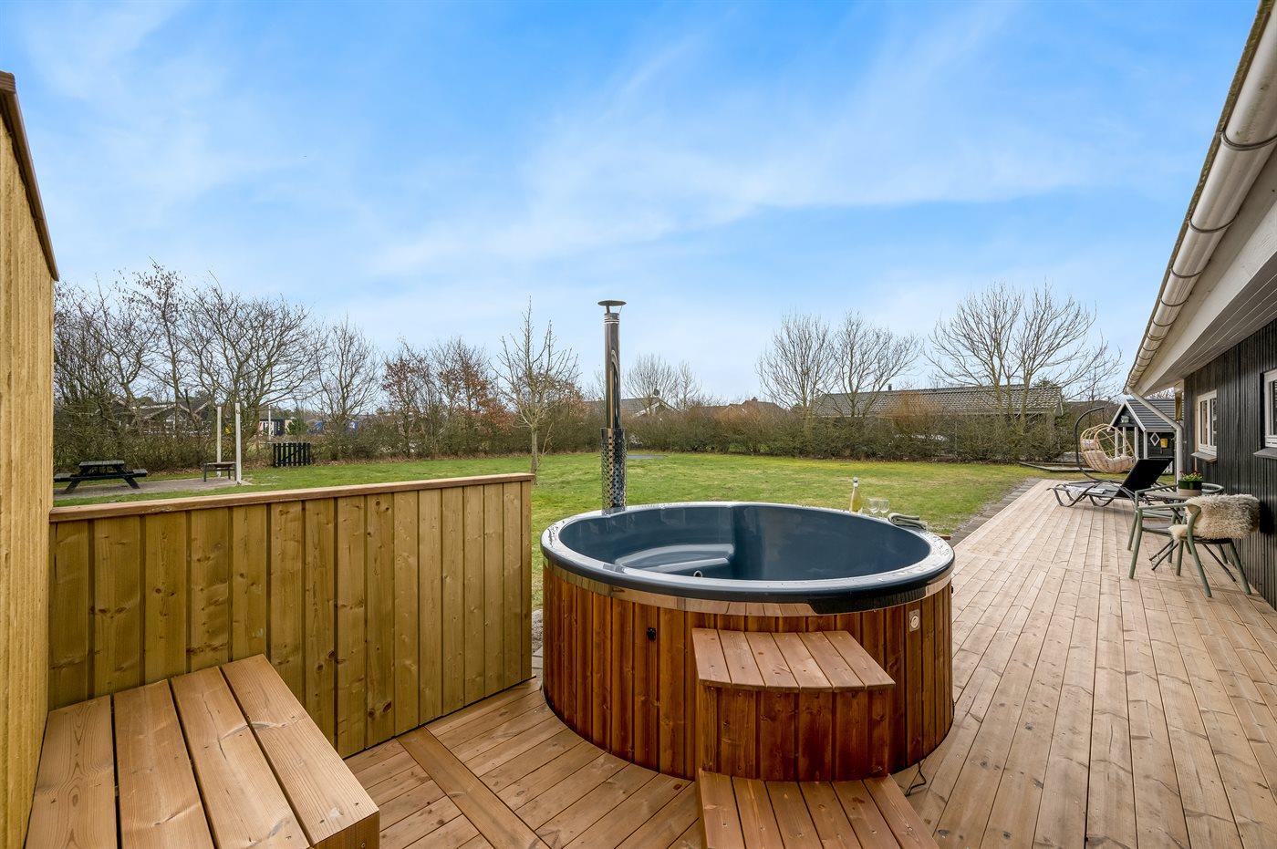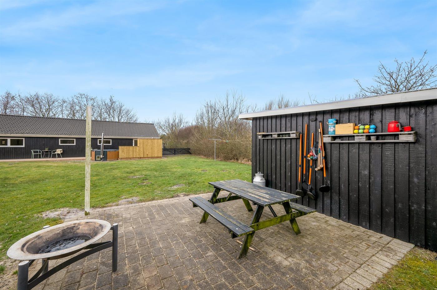 Ferieboligen er beliggende på en 1200 m² stor havegrund. Der er 1350 m til havet. Der er 500 m til fjorden. Nærmeste forretning er beliggende i en afstand af 300 m. Til ferieboligen hører åbent terrasseareal. Desuden er der overdækket terrasse. Udendørs bruser. Grill til rådighed. Der er installeret stik til opladning af elbil. Type 2 stik. Med 11 kW ladeeffekt. Parkering ved ferieboligen.