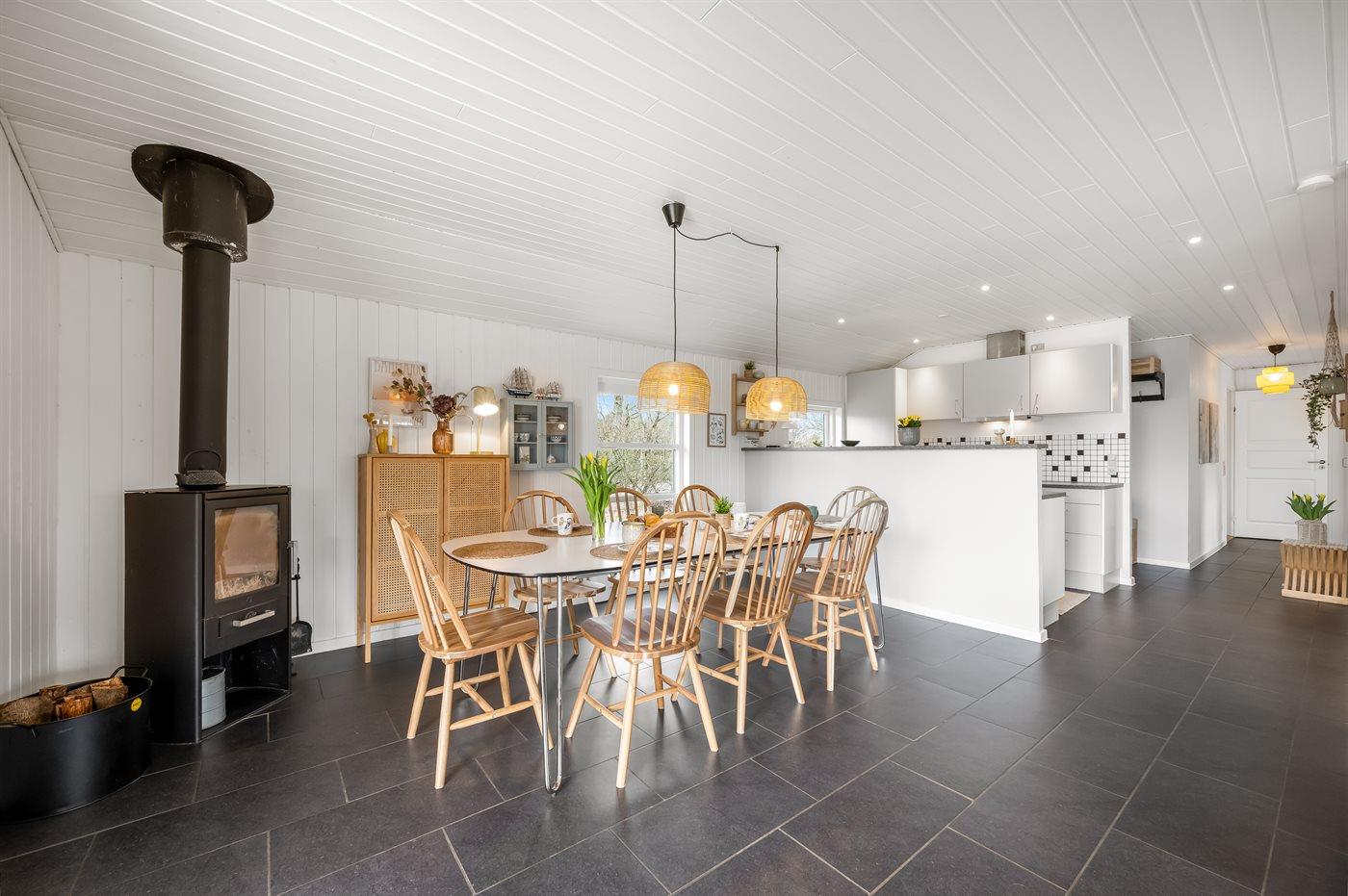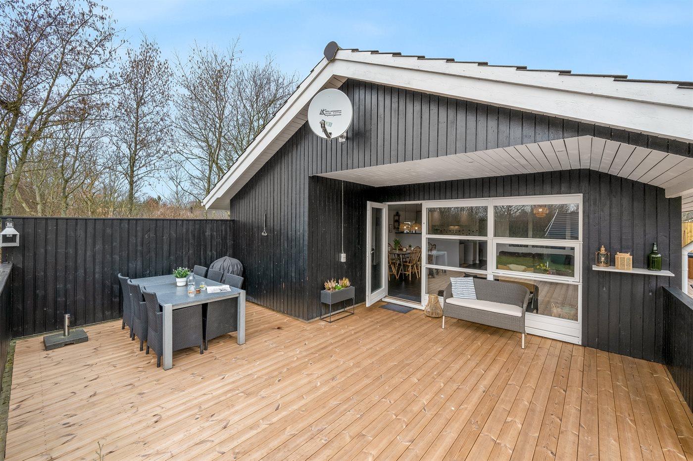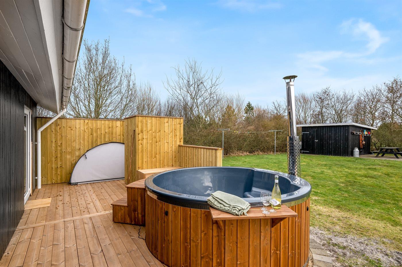 Ferieboligen er beliggende på en 1200 m² stor havegrund. Der er 1350 m til havet. Der er 500 m til fjorden. Nærmeste forretning er beliggende i en afstand af 300 m. Til ferieboligen hører åbent terrasseareal. Desuden er der overdækket terrasse. Udendørs bruser. Grill til rådighed. Der er installeret stik til opladning af elbil. Type 2 stik. Med 11 kW ladeeffekt. Parkering ved ferieboligen.