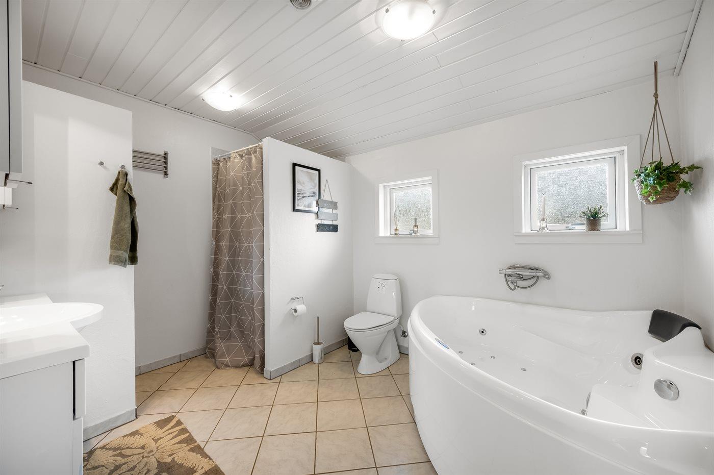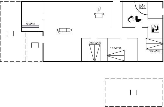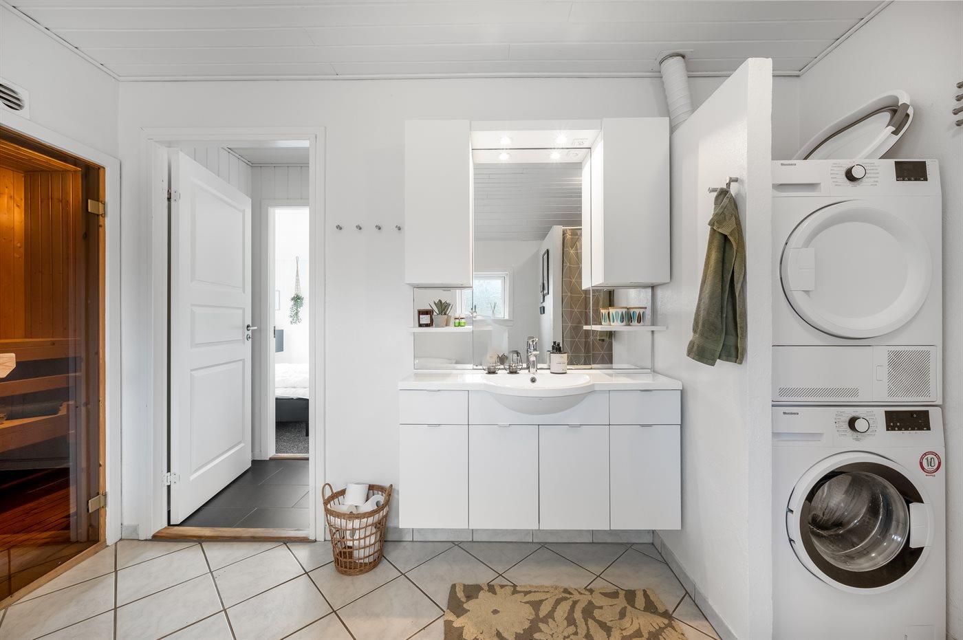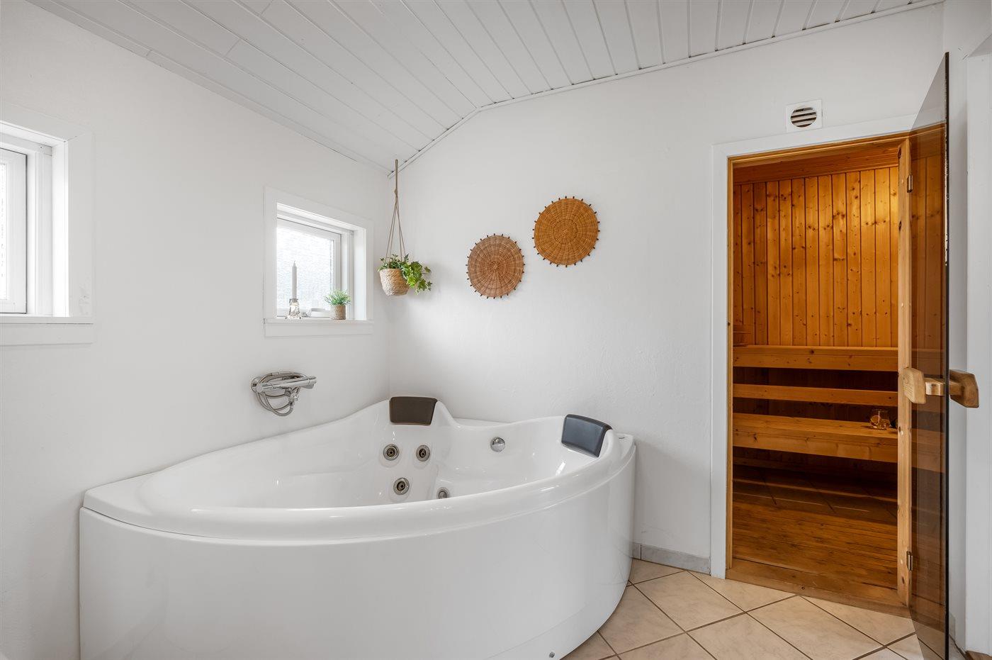 Der er 1 badeværelse med bruseniche og 1 toilet. I saunaen er der mulighed for afslapning.