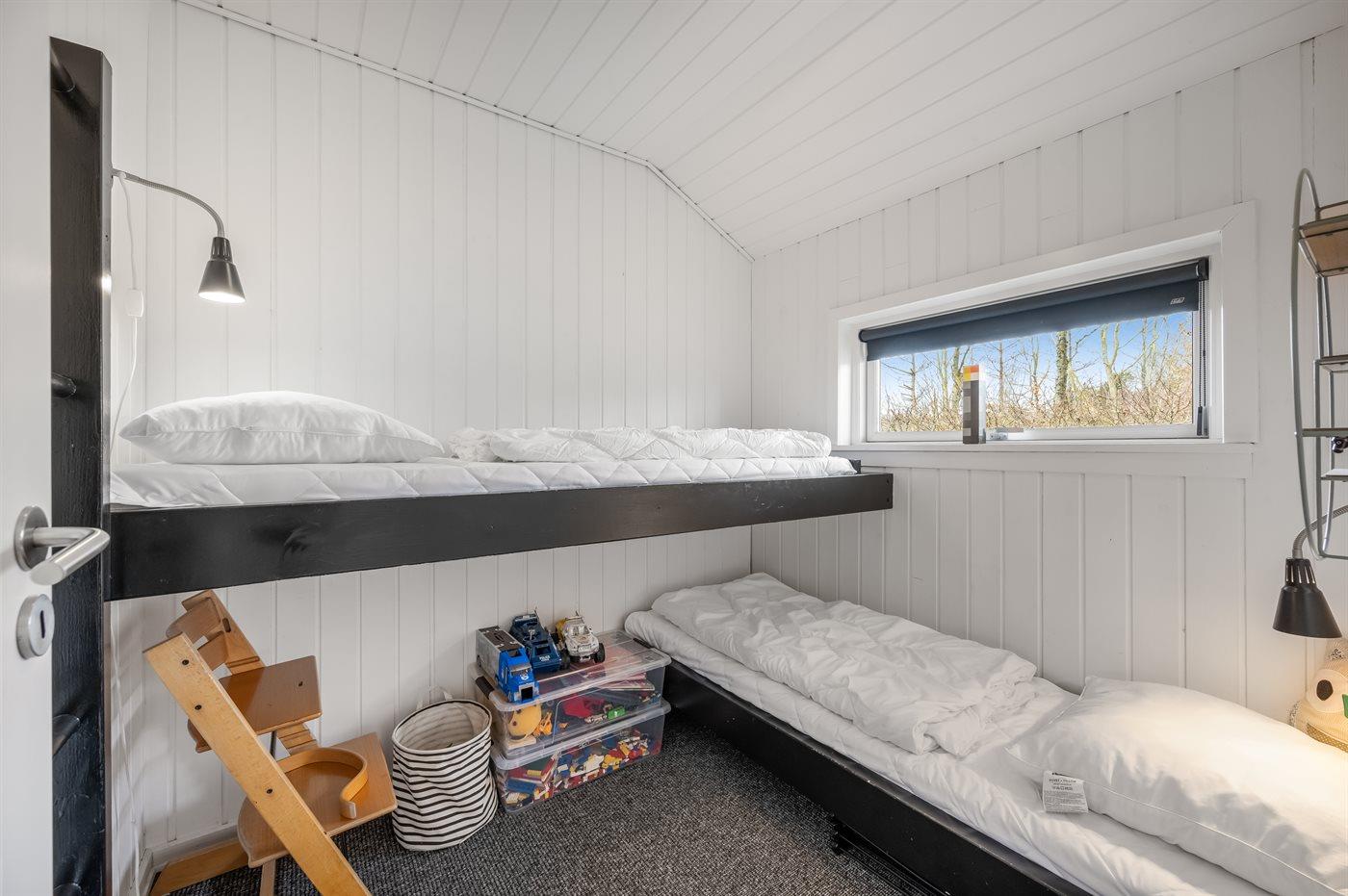 Der er i alt 4 soveværelser. Sovepladserne fordeler sig på: 4 sovepladser i dobbeltsenge. 2 sovepladser i enkeltsenge. 2 sovepladser i køjeseng.