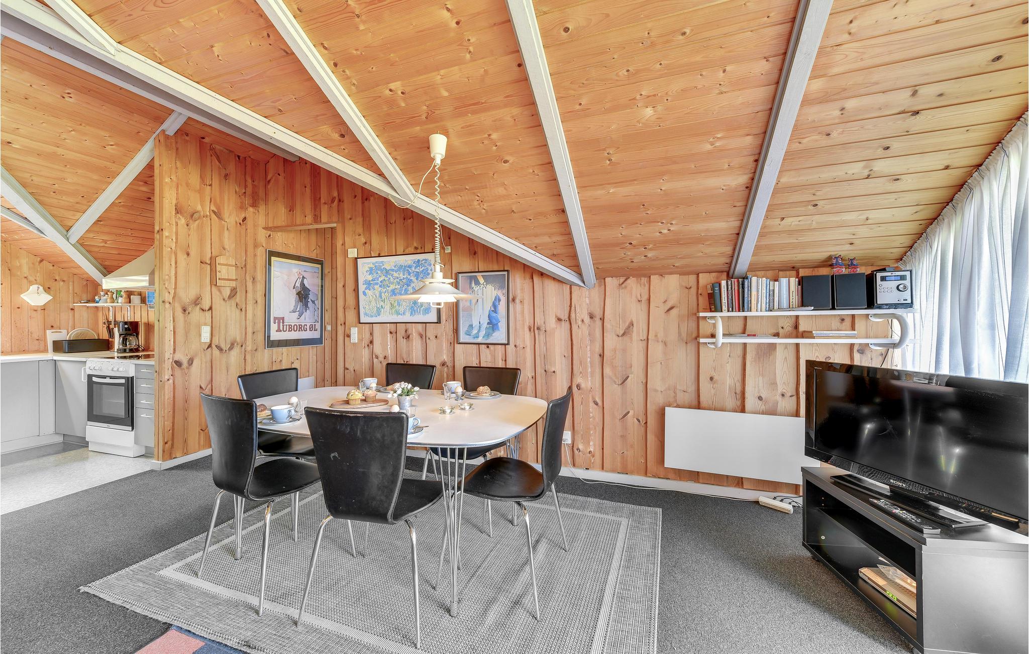 Hvis I planlægger en ferie ikke langt fra stranden, hvor der også er mulighed for spændende aktiviteter, er dette hus det rette valg. Det byder på hyggelige rum og smukke trælofter – en skøn ramme om jeres pause fra hverdagen. Se frem til hyggelige aftener med hele familien, hvad enten det er til fælles aftensmad med udsigt til haven eller en spilleaften i sofagruppen, mens ilden knitrer i brændeovnen.