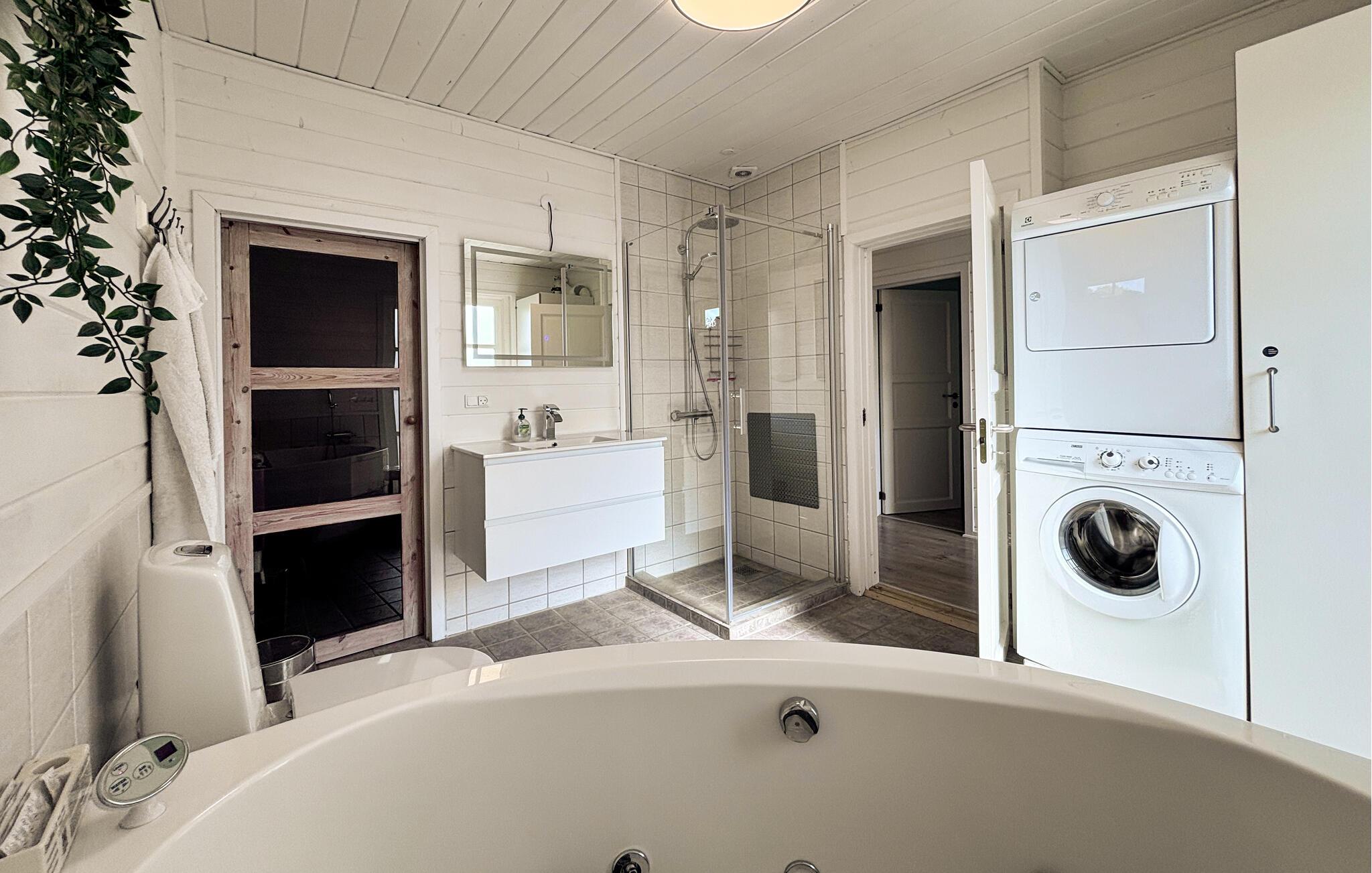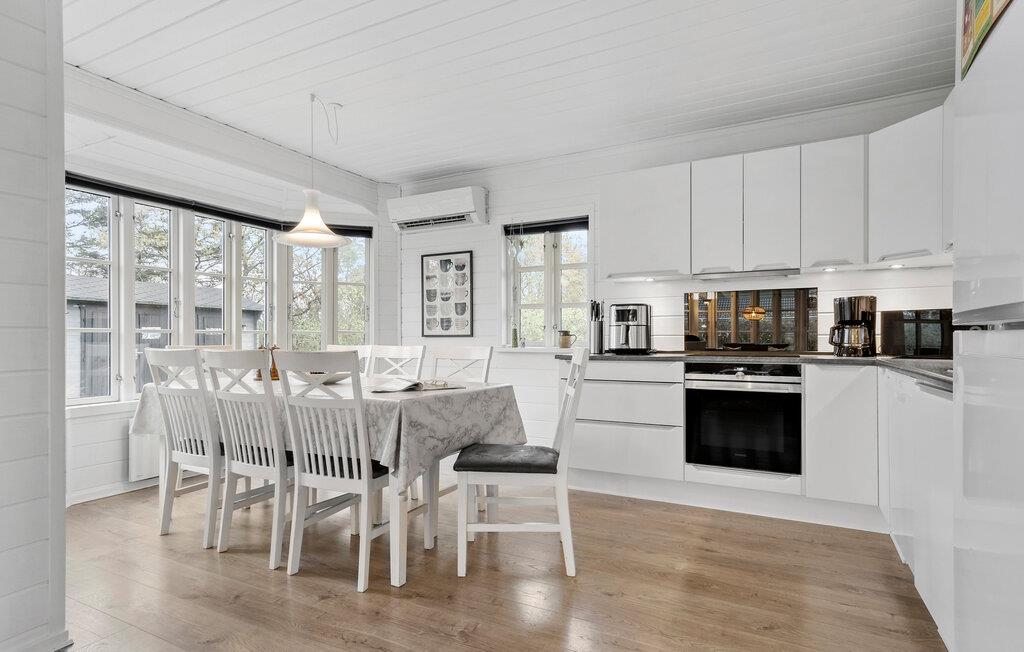 Tilbring en afslappende tid i jeres indbydende feriehus, hvorfra I kan gå til stranden. Det byder på lyse rum og moderne komfort og skaber en skøn ramme om jeres pause fra hverdagen. Spis sammen med dejlig udsigt til det fri, lad middagen ved det lange spisebord gå glidende over i en spilleaften, og skab en hyggelig stemning med ild i brændeovnen.