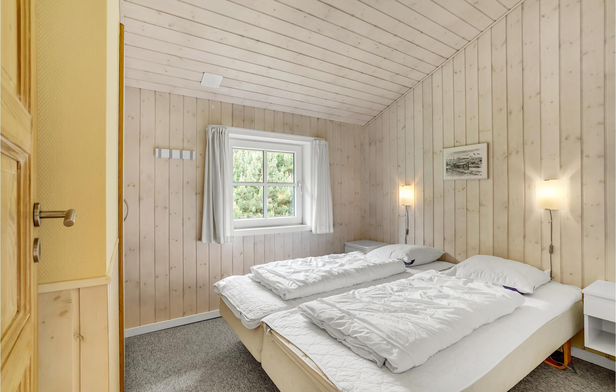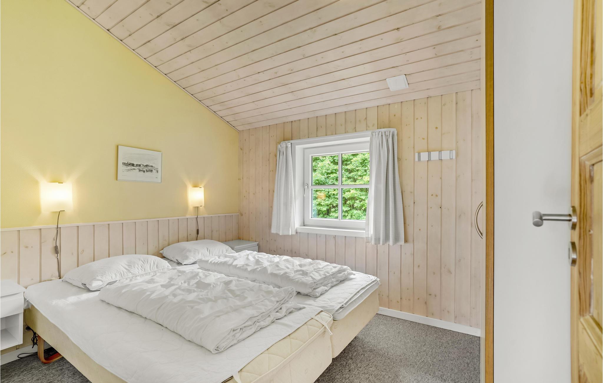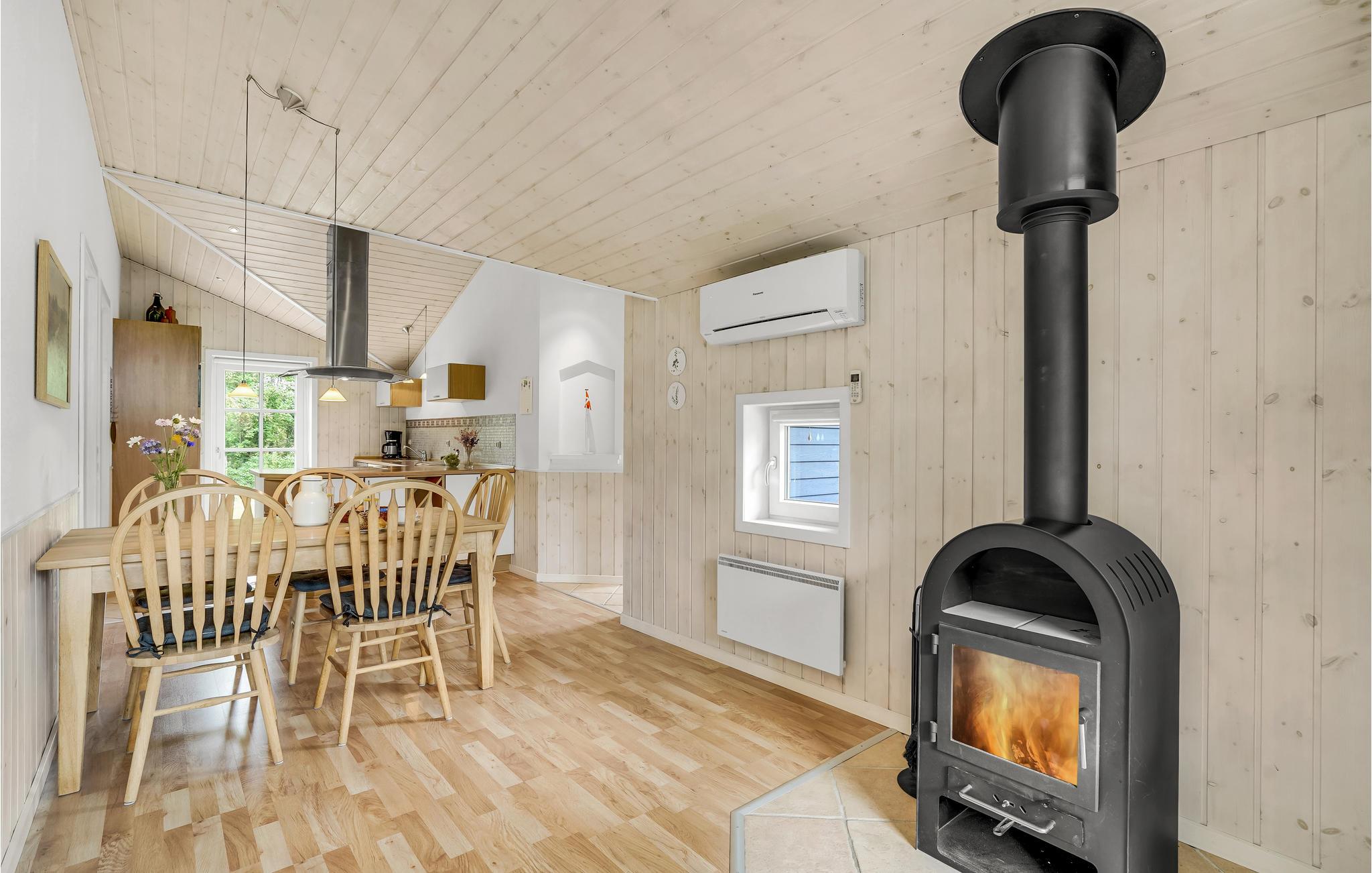 Der er lagt op til nogle fredfyldte dage i dette attraktive feriehus, i gåafstand fra stranden. Den lyse opholdsstue med store vinduer sikrer, at I fuldt ud kan nyde nærheden til naturen. Sæt jer til rette i saunaen og spabadet, og efter en aktiv dag kan I finde jer komfortable i sofaen, nyde udsigten og skabe en hyggelig atmosfære med ild i brændeovnen.