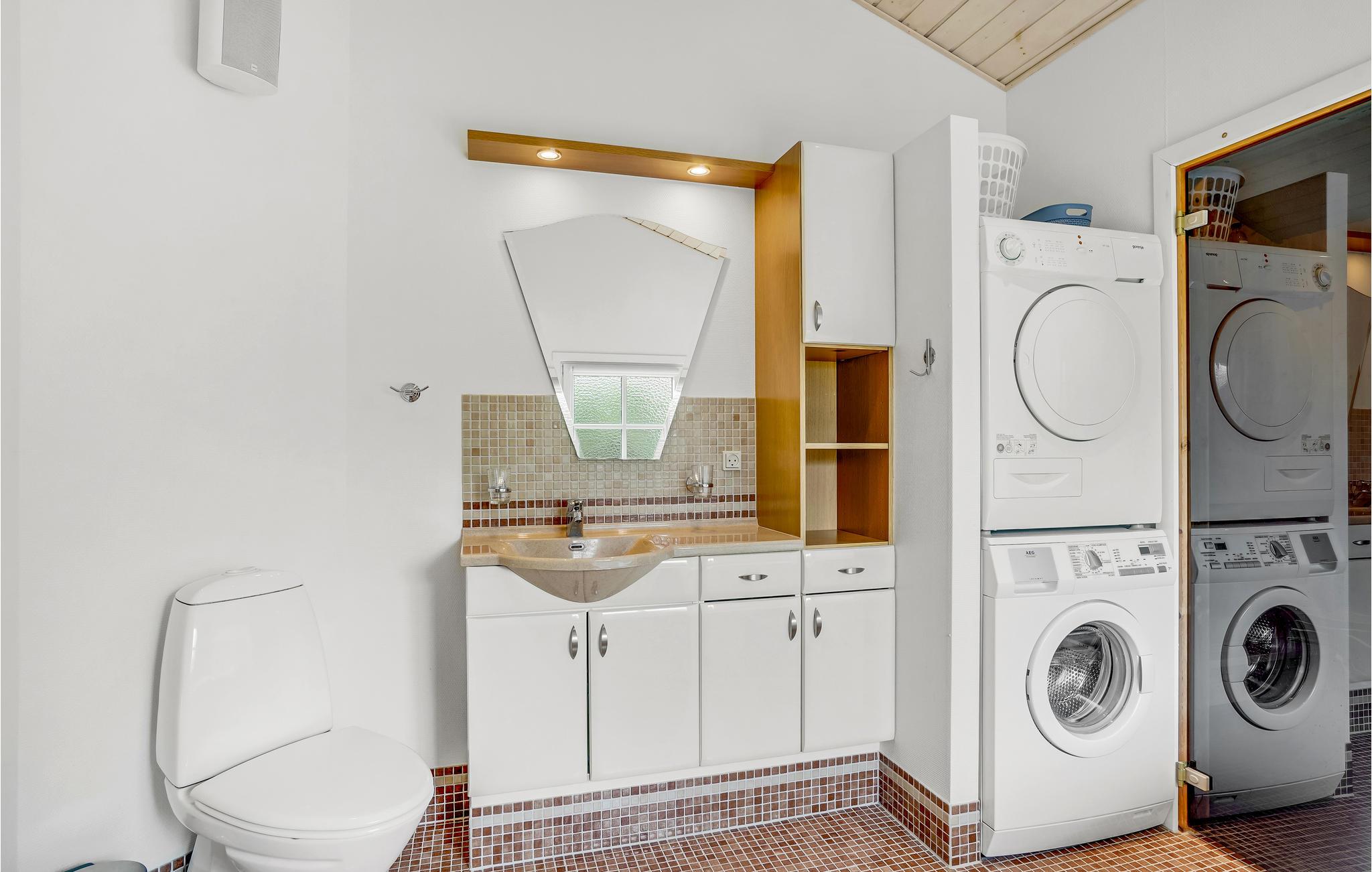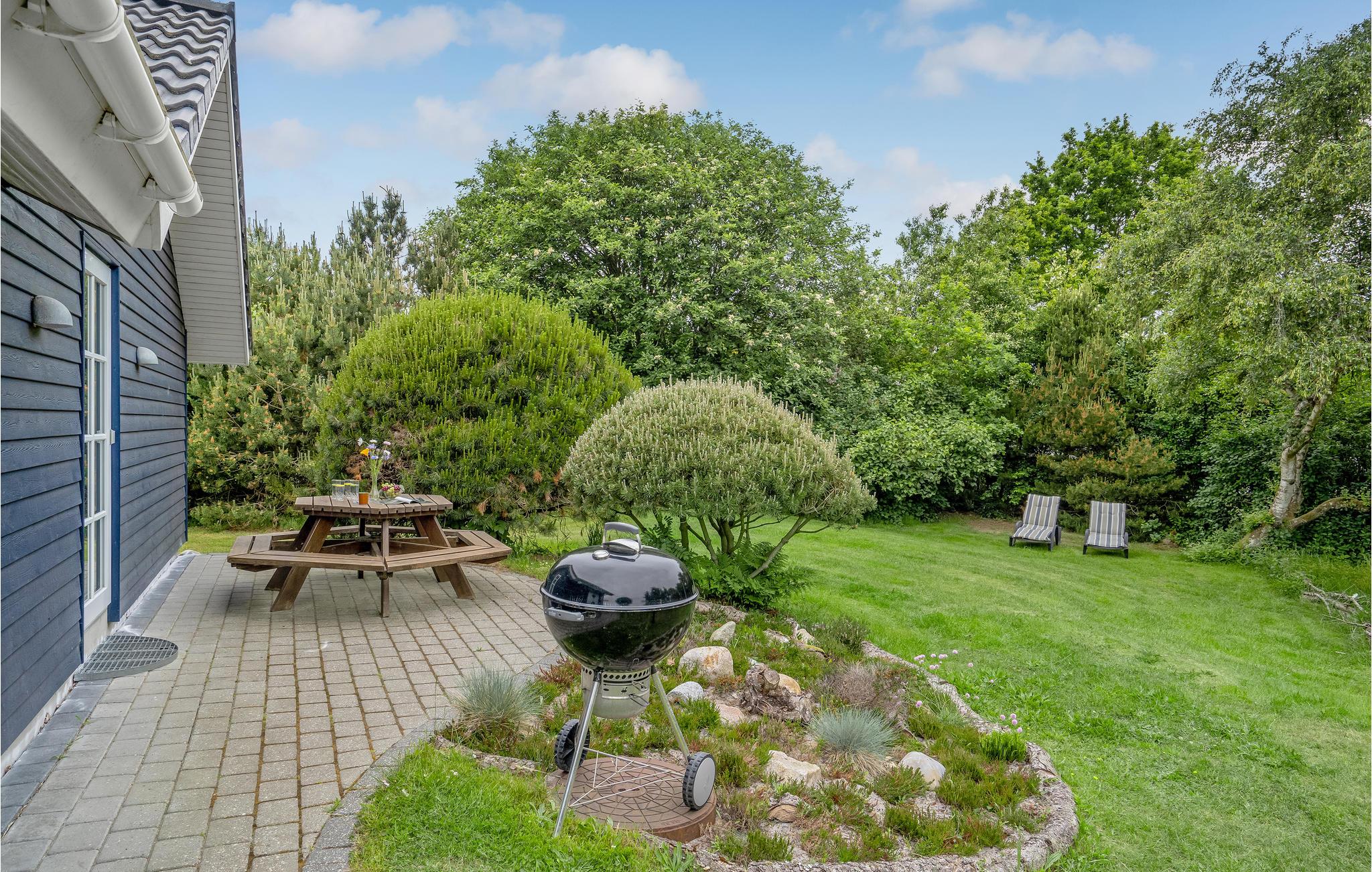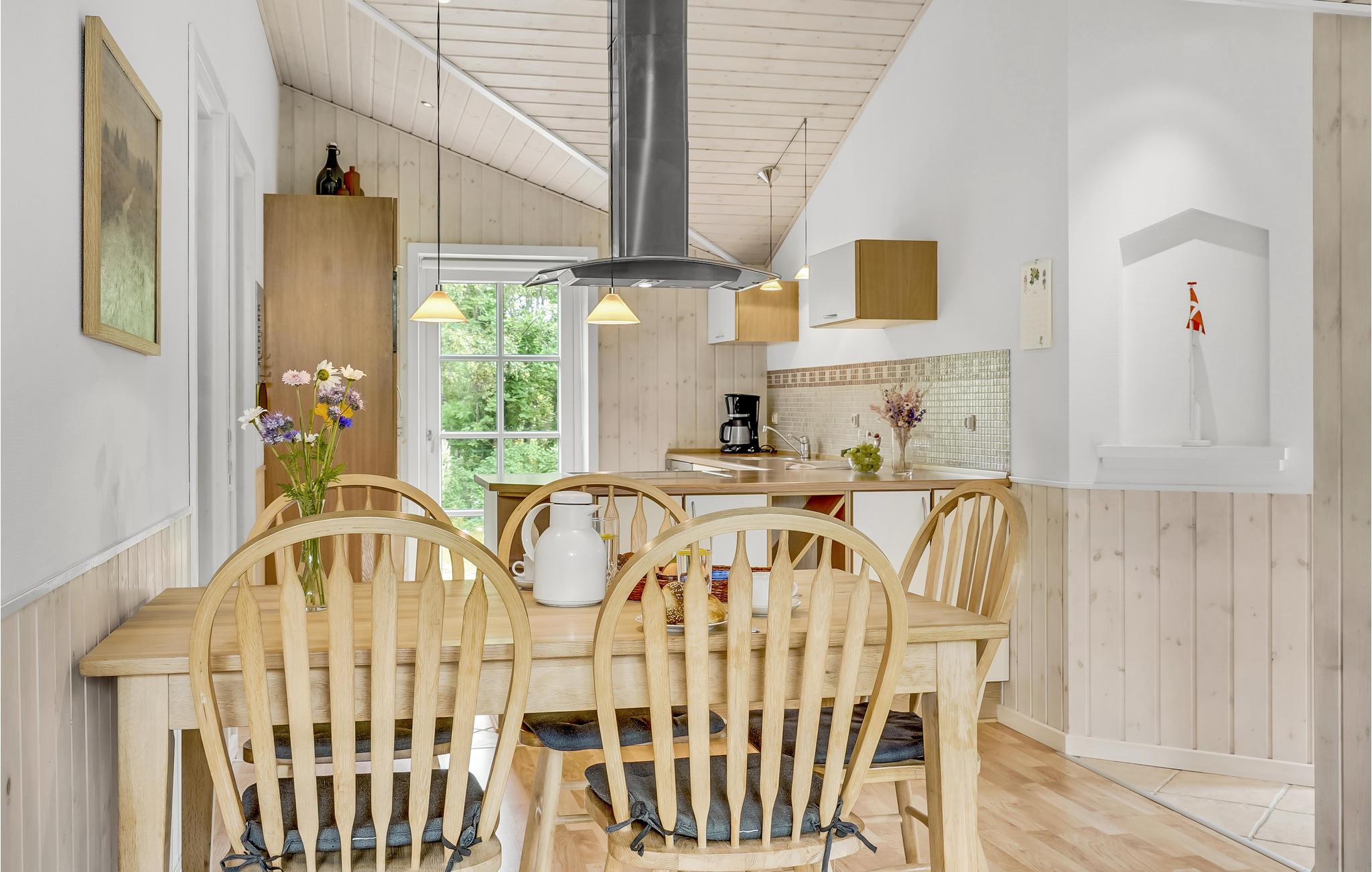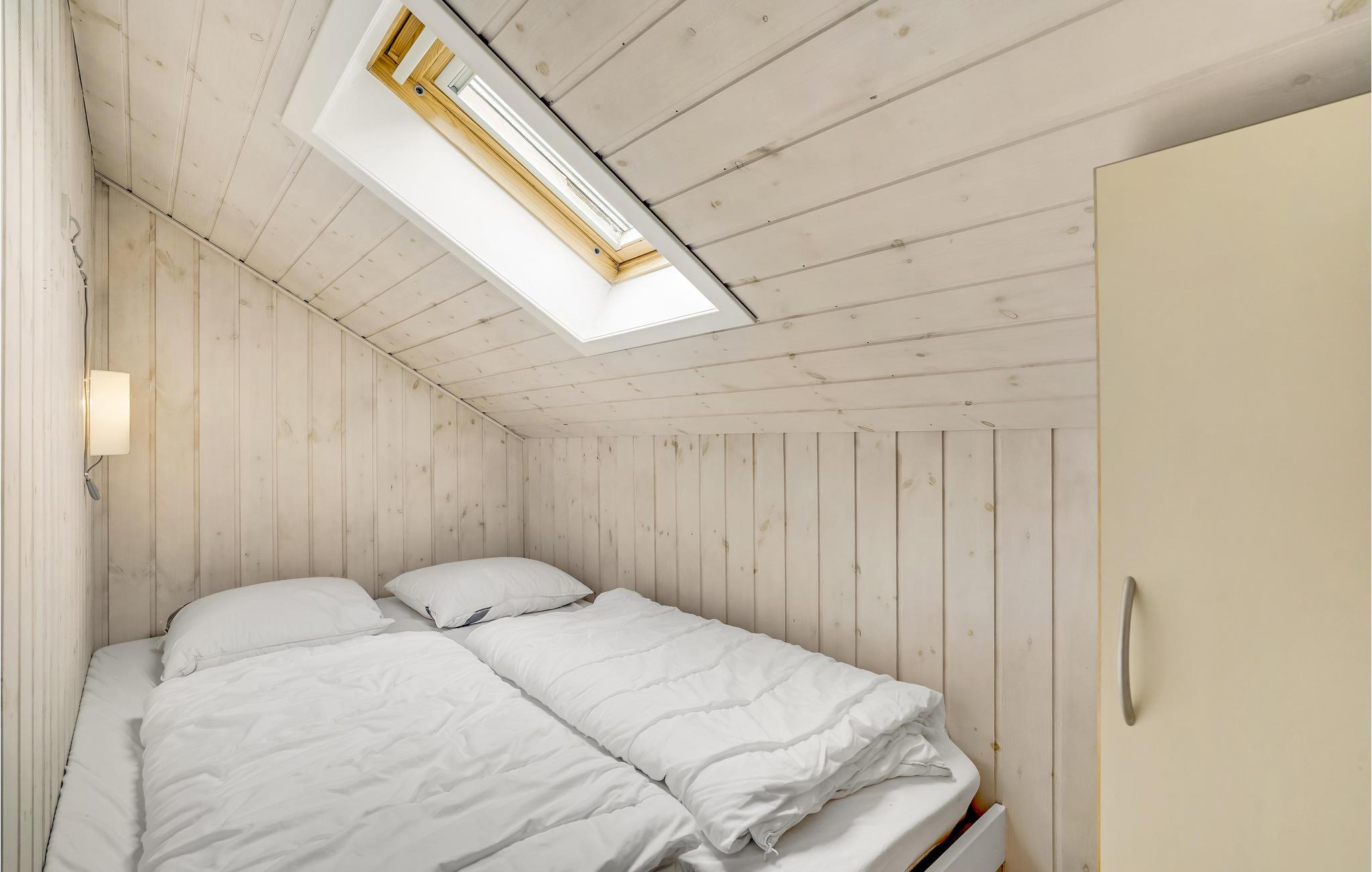 Der er lagt op til nogle fredfyldte dage i dette attraktive feriehus, i gåafstand fra stranden. Den lyse opholdsstue med store vinduer sikrer, at I fuldt ud kan nyde nærheden til naturen. Sæt jer til rette i saunaen og spabadet, og efter en aktiv dag kan I finde jer komfortable i sofaen, nyde udsigten og skabe en hyggelig atmosfære med ild i brændeovnen.