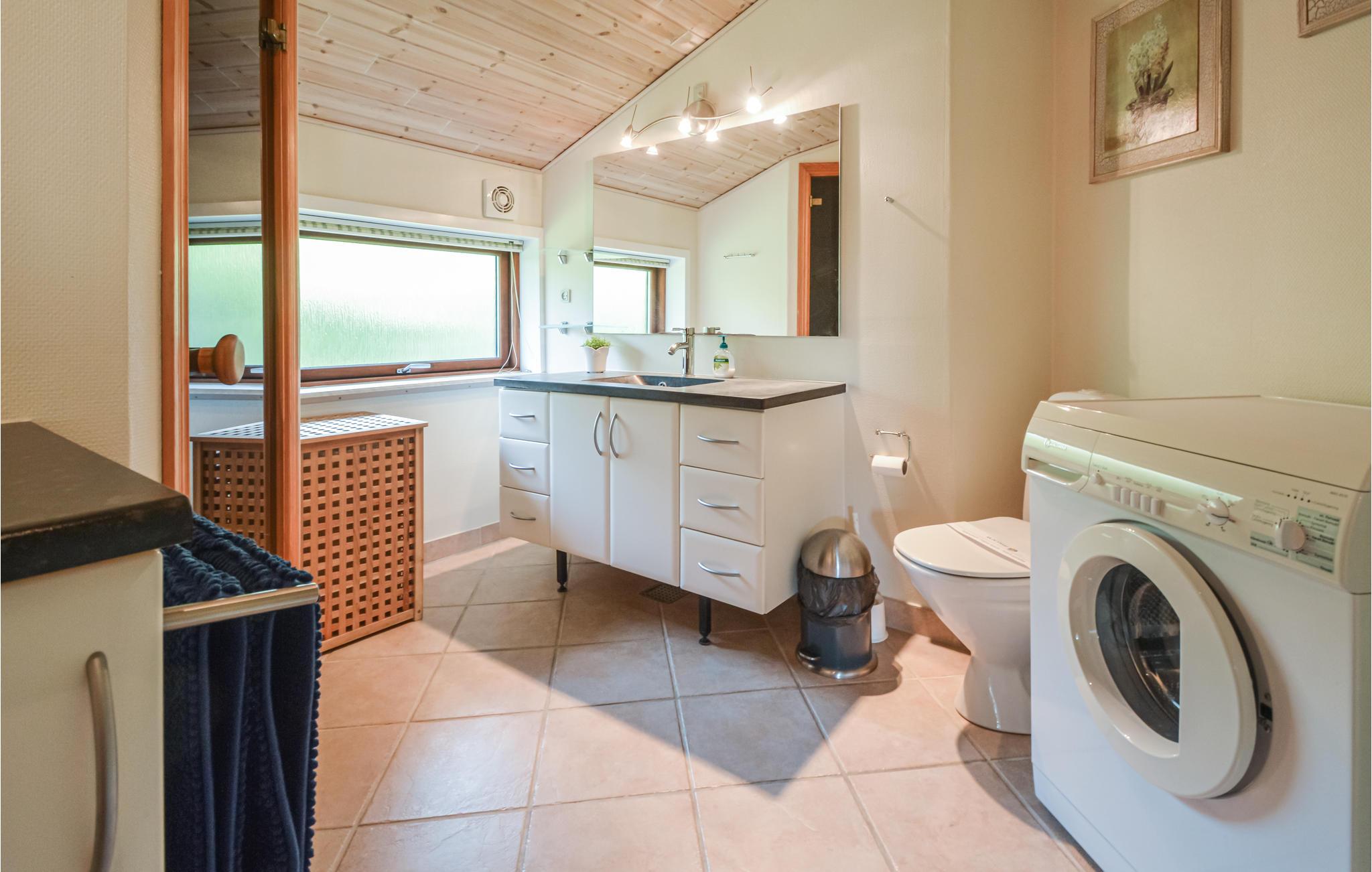 Udenfor finder I en dejlig træterrasse med havemøbler, parasol og grill til hyggelige aftener med hele familien. Familiens yngste medlemmer vil elske haven, hvor de kan boltre sig uforstyrret. Der er en gynge, sandkasse og masser af plads til at lege.