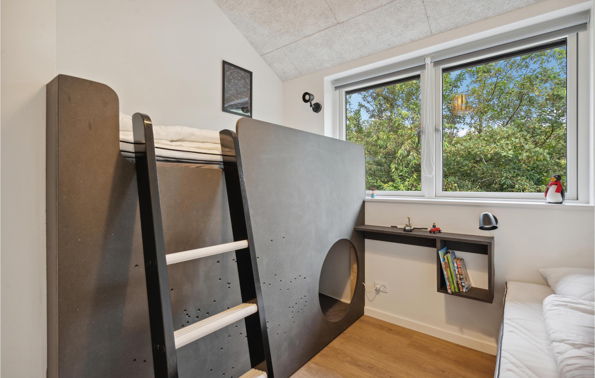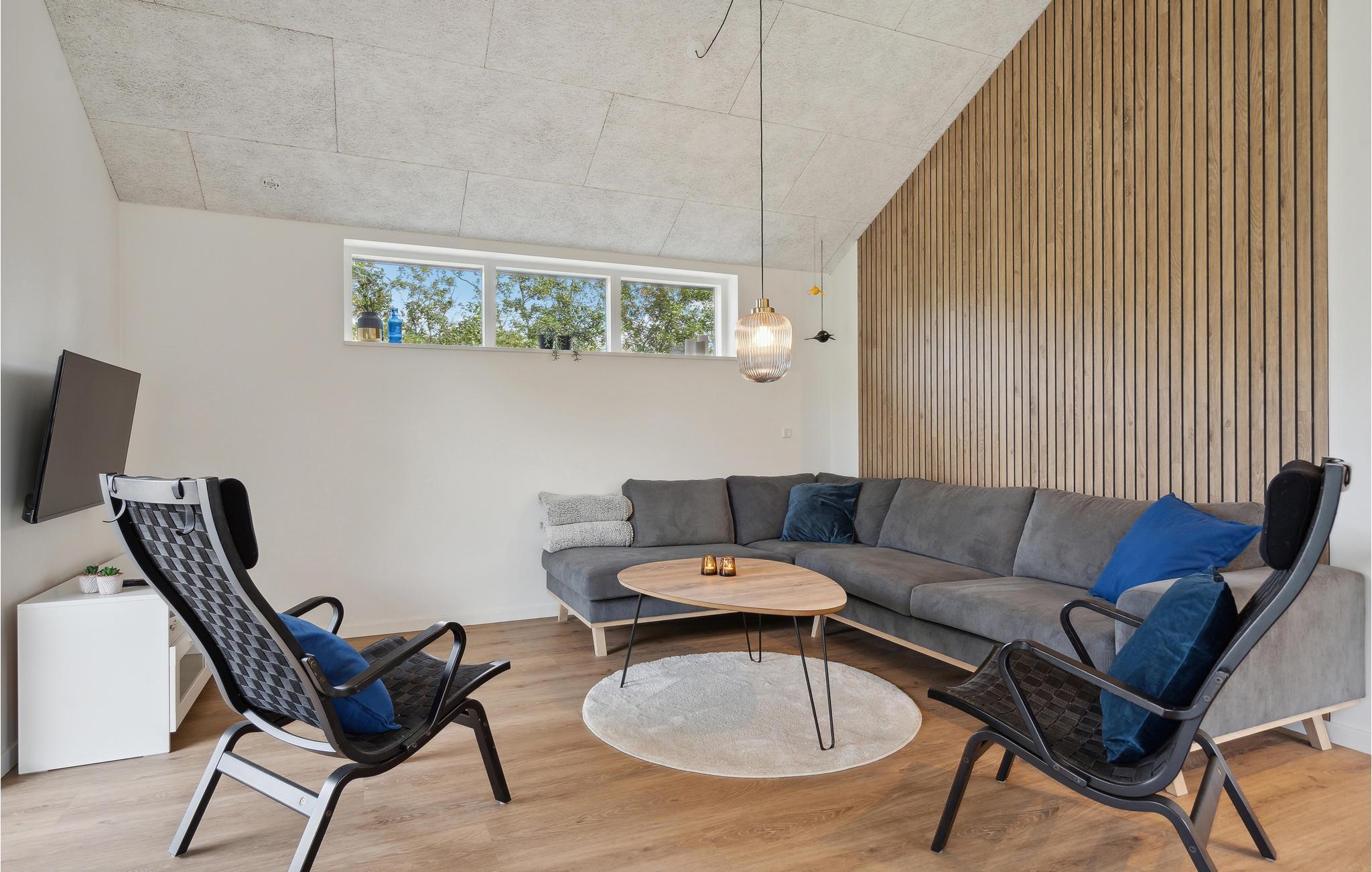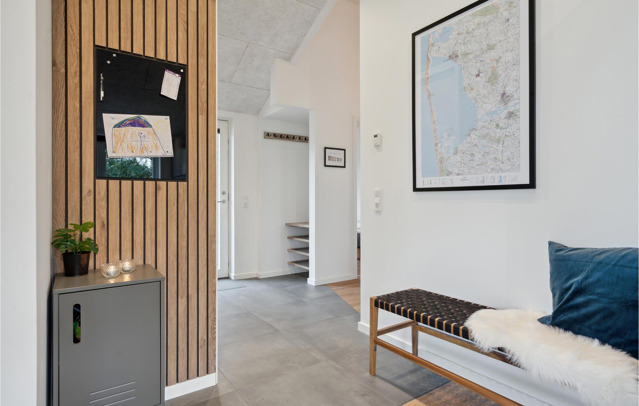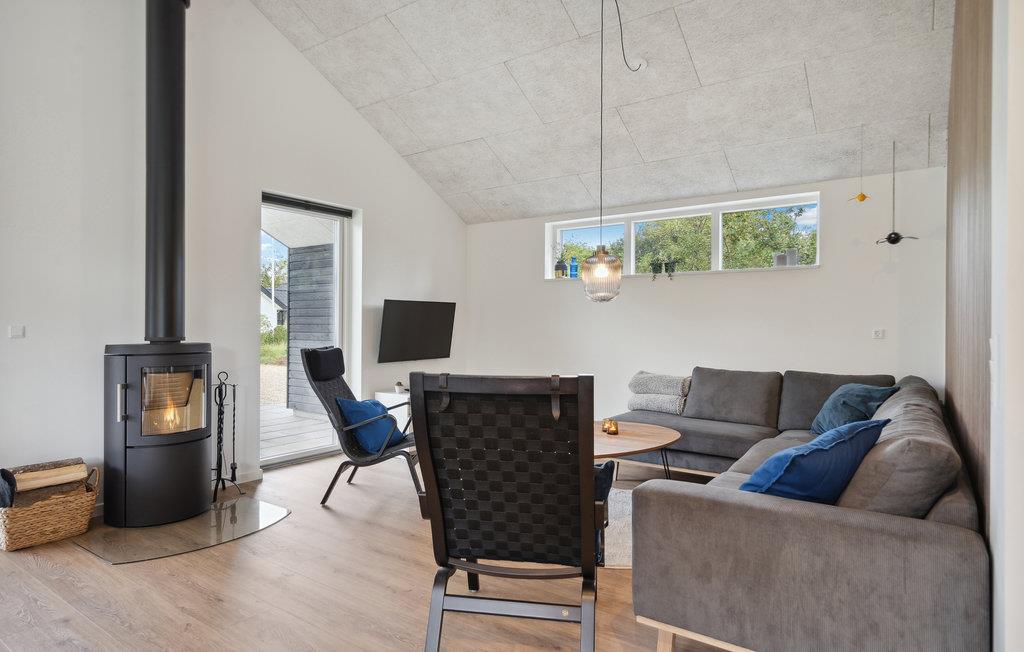 Velkommen til dette indbydende sommerhus, som har en skøn beliggenhed nær fjorden i et område med begrænset trafik. Boligen er flot og moderne, og de store vinduespartier lukker lyset ind og giver jer en skøn, beroligende udsigt til de grønne rammer. Det åbne opholdsområde bliver hurtigt centrum for fælles aktiviteter. Når I vender hjem fra dagens eventyr, kan I læne jer tilbage med udsigt til grunden og snakke om dagens bedste oplevelser, mens ilden knitrer i brændeovnen. Hvis I trænger til at få varmen tilbage i kroppen efter en frisk gåtur, kan I sætte jer til rette i saunaen.