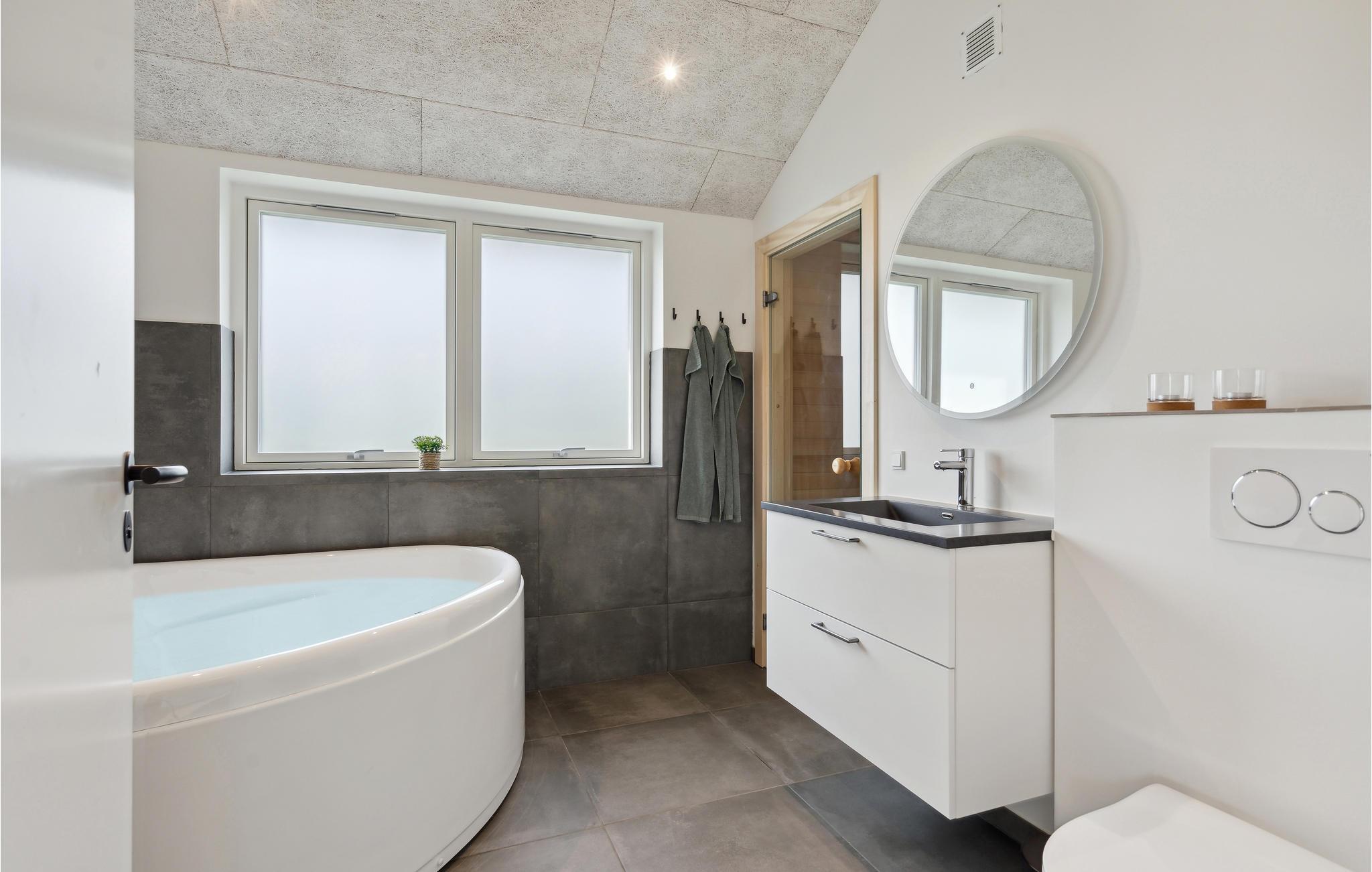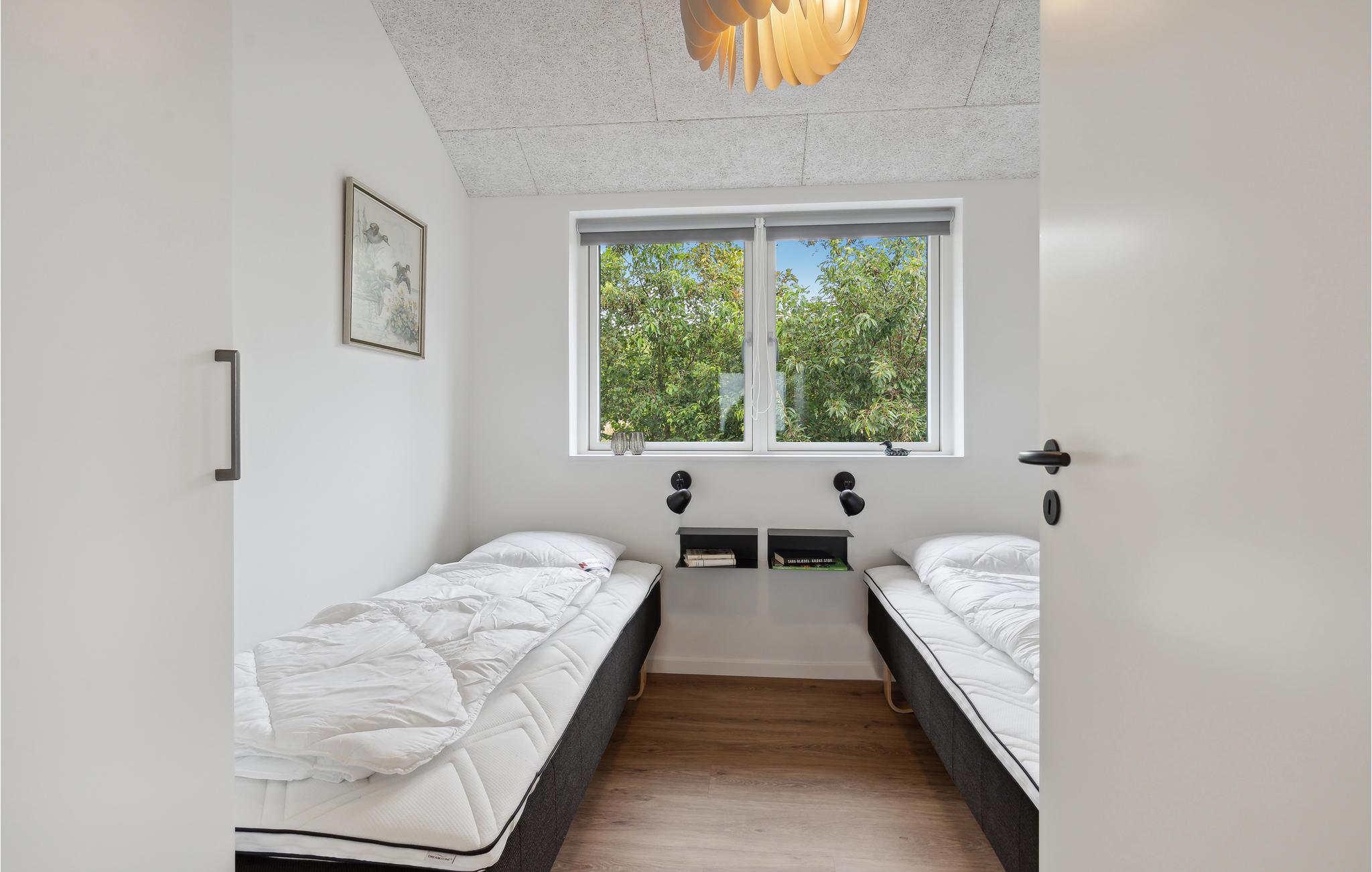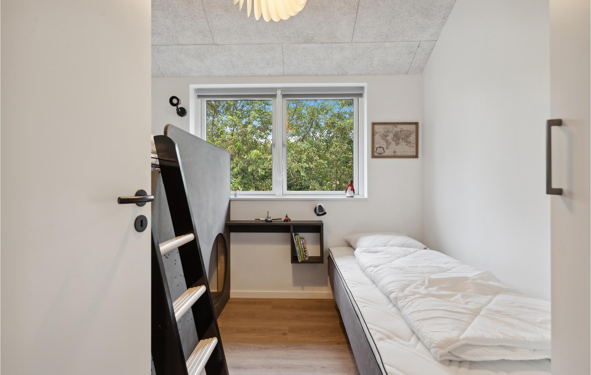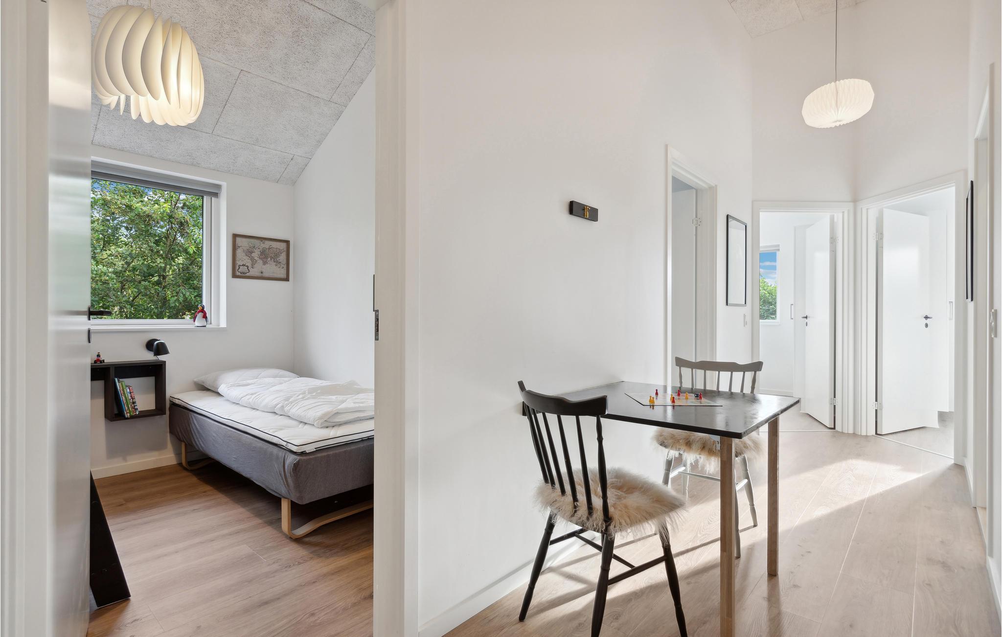 Velkommen til dette indbydende sommerhus, som har en skøn beliggenhed nær fjorden i et område med begrænset trafik. Boligen er flot og moderne, og de store vinduespartier lukker lyset ind og giver jer en skøn, beroligende udsigt til de grønne rammer. Det åbne opholdsområde bliver hurtigt centrum for fælles aktiviteter. Når I vender hjem fra dagens eventyr, kan I læne jer tilbage med udsigt til grunden og snakke om dagens bedste oplevelser, mens ilden knitrer i brændeovnen. Hvis I trænger til at få varmen tilbage i kroppen efter en frisk gåtur, kan I sætte jer til rette i saunaen.