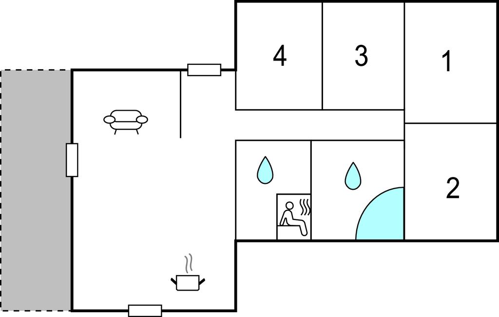 Soveværelse (nr. 4) - 2 Sovepladser. (Enkeltseng(e)).