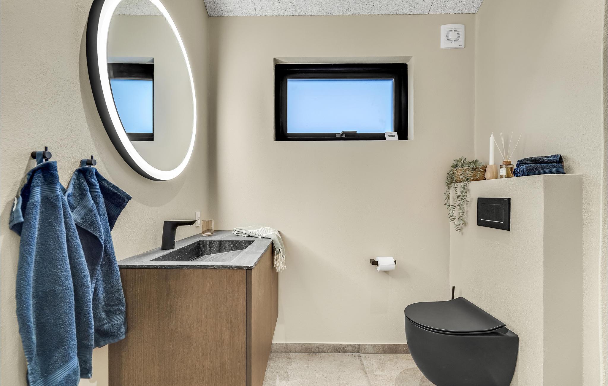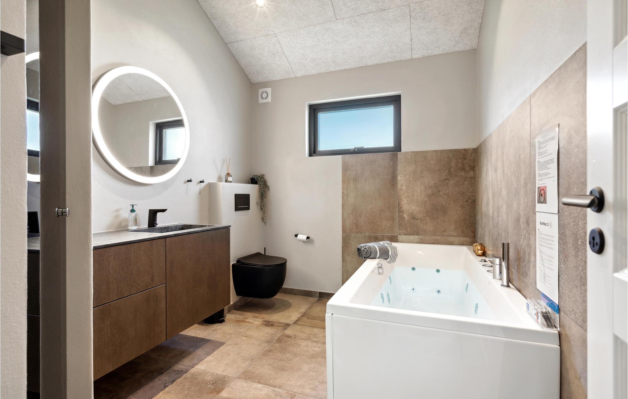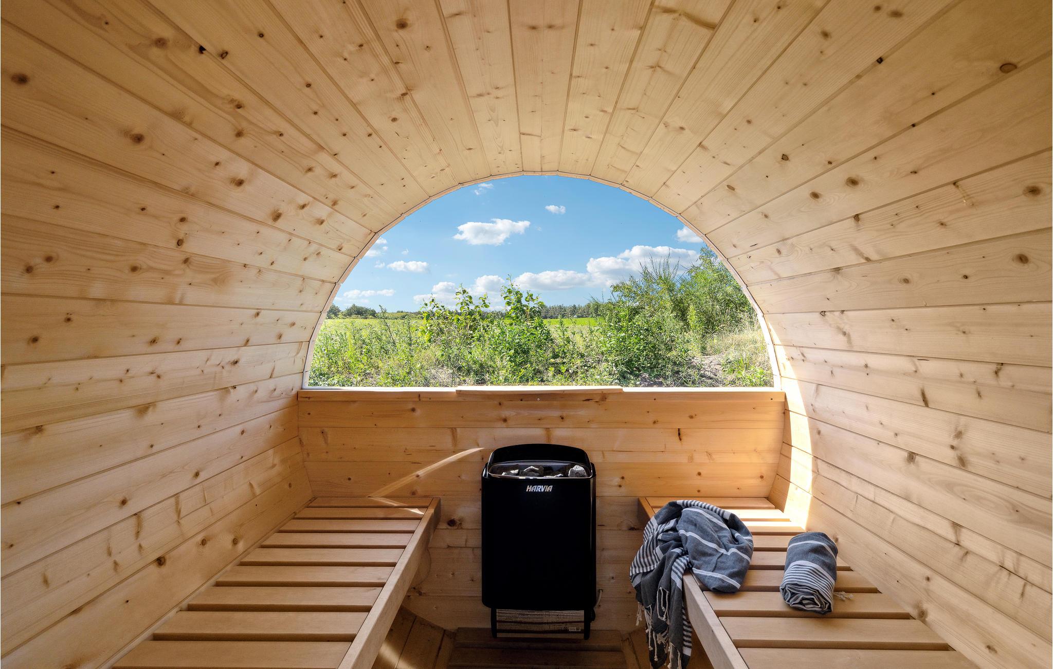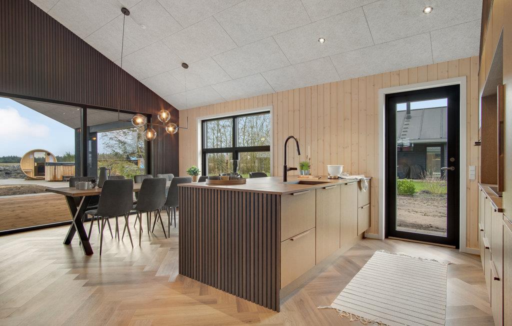 Huset ligger kun en kort lille gåtur fra Ringkøbing Fjord, og der er kælet for hver en detalje i indretningen. Glem alt om den travle hverdag og nyd de helt særlige rammer både ude og inde. Læn jer tilbage med et glas vin i sofaen og nyd udsigten til landskabet gennem det store panoramavindue, som virker meget beroligende. Når I er klar til at spise, er det til samme vidunderlige udsigt, så her kan I give jer god tid til at sidde og snakke længe efter. Vil I skrue ekstra op for forkælelsen oven på en lang dag i naturen, kan I sætte jer til rette i saunaen eller spabadet, hvis I ikke hellere vil blive i stuen og nyde varmen fra brændeovnen.