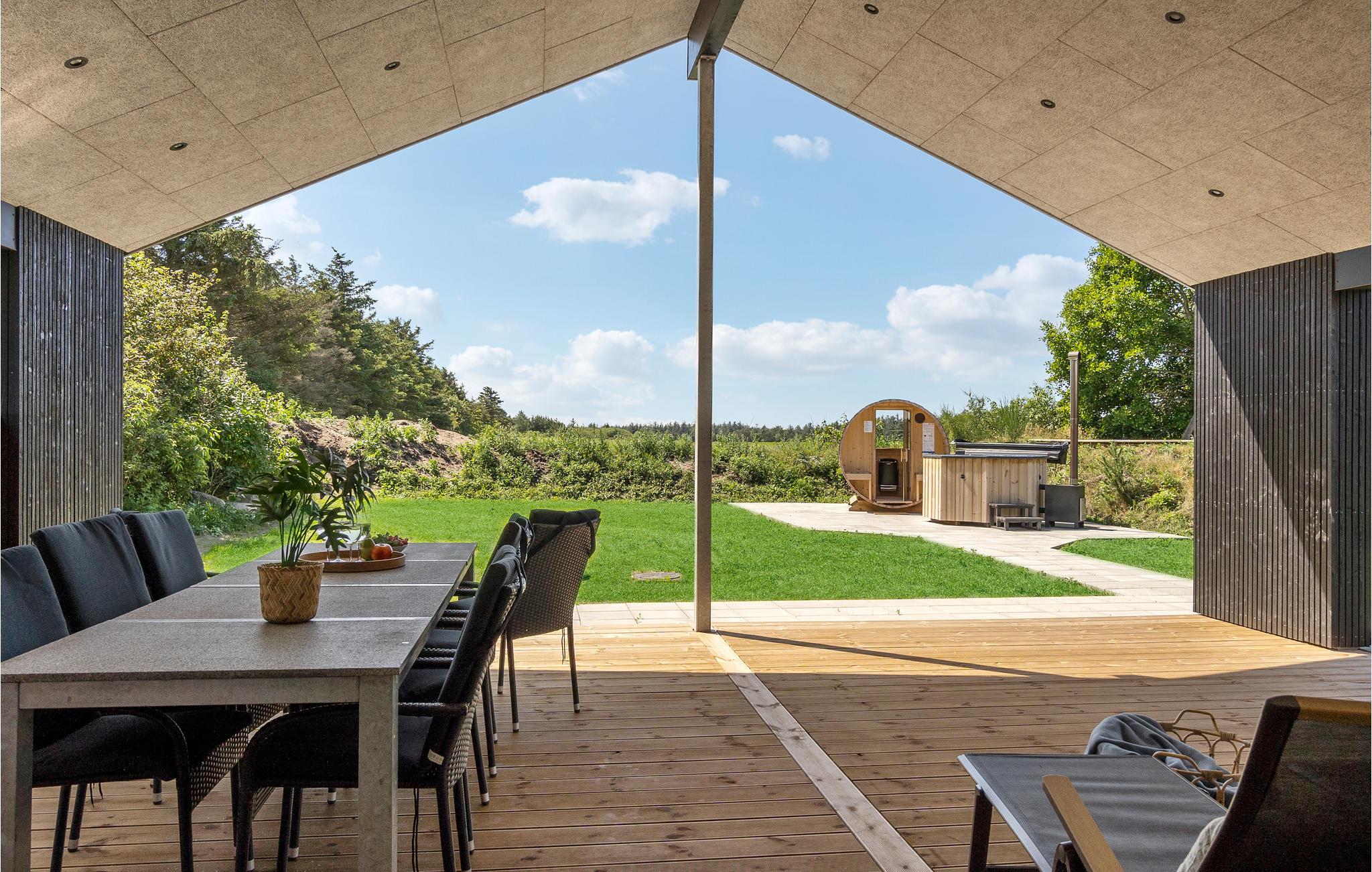 Luksuriøst feriehus tæt på Ringkøbing Fjord med sauna, spabad og privat have for en afslappende ferie.