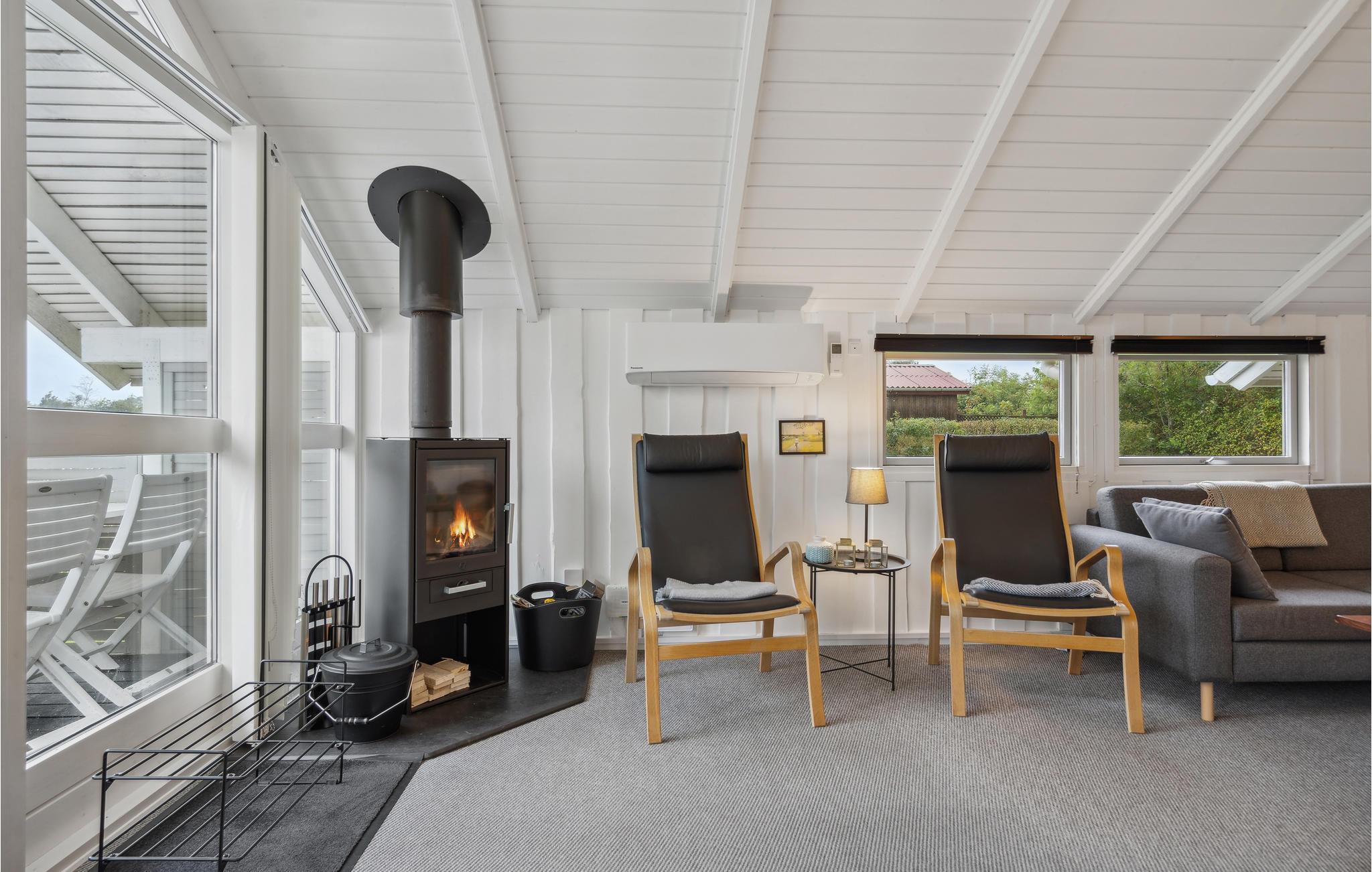 Hold en afslappende ferie i dette indbydende hus, der der ligger nogle få skridt fra fjorden på en velholdt grund. Stå op til en smuk udsigt over naturen og slap af efter en gåtur på stranden i den attraktive opholdsstue, hvor I også kan nyde udsigten over haven takket være de store vinduer. Tænd op i brændeovnen om aftenen og snak længe i den behagelige sofa.
