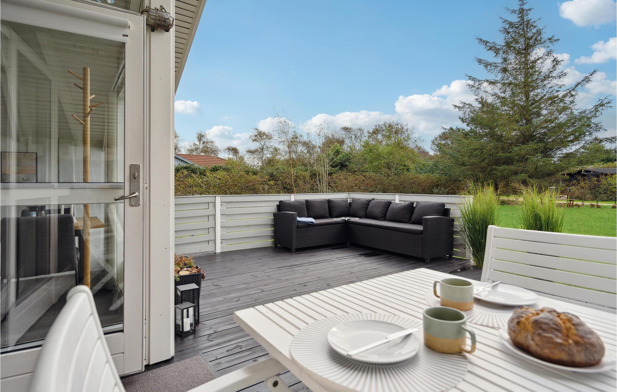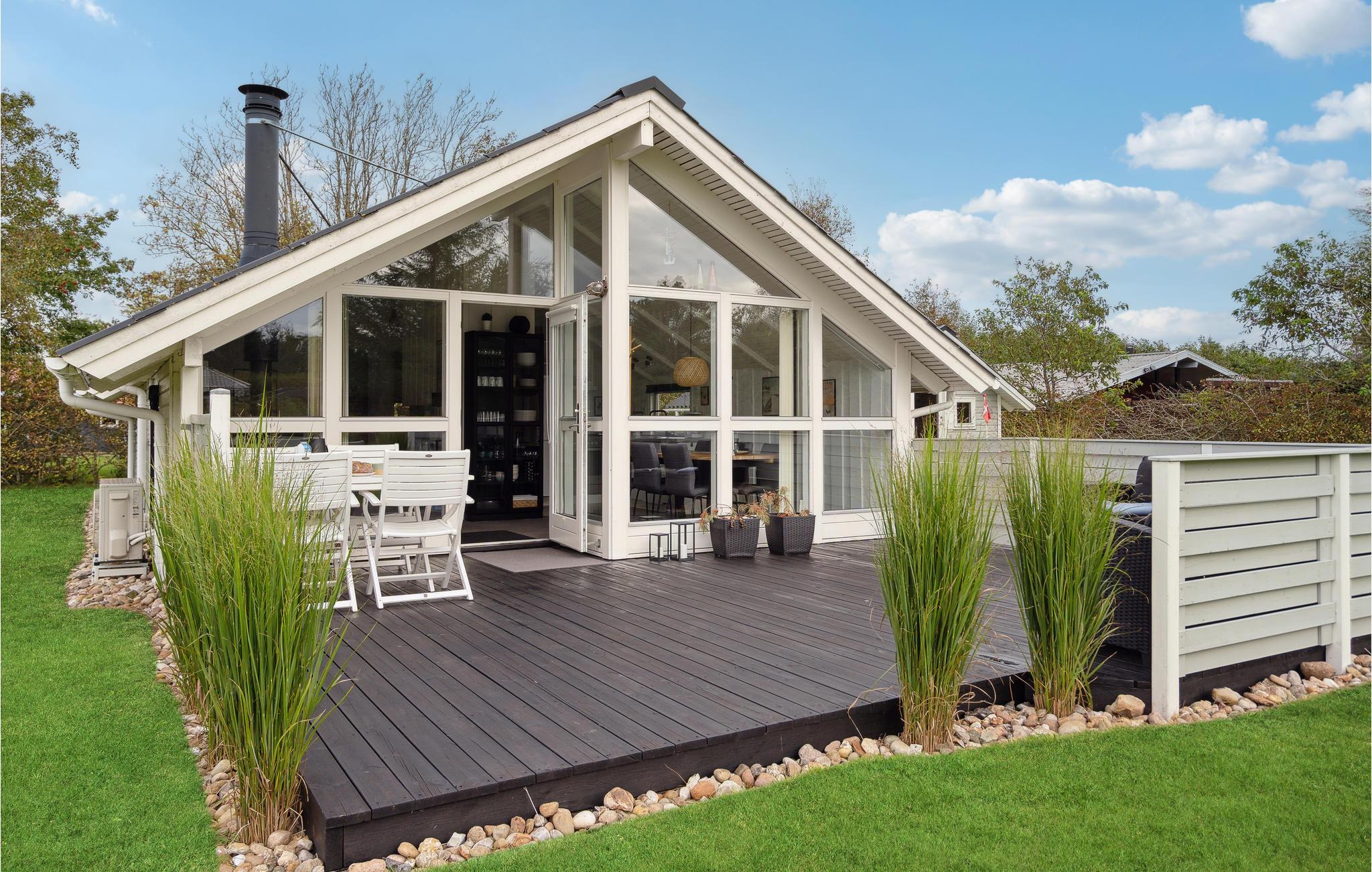 Hyggeligt feriehus tæt på fjorden med smuk naturudsigt og dejlig terrasse ved Skaven Strand.