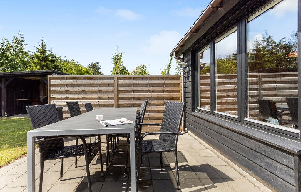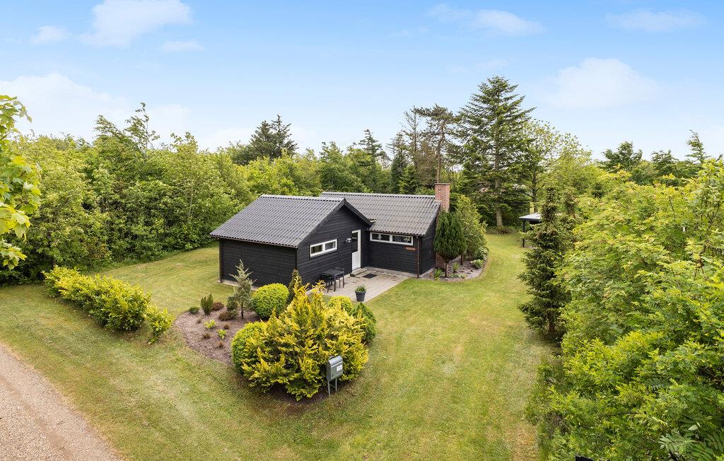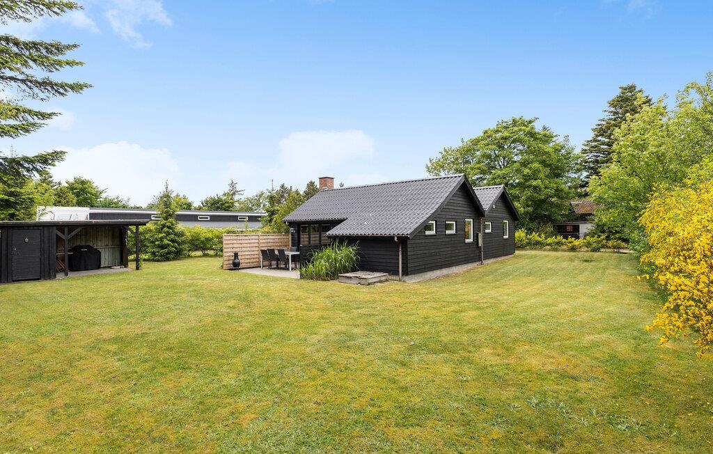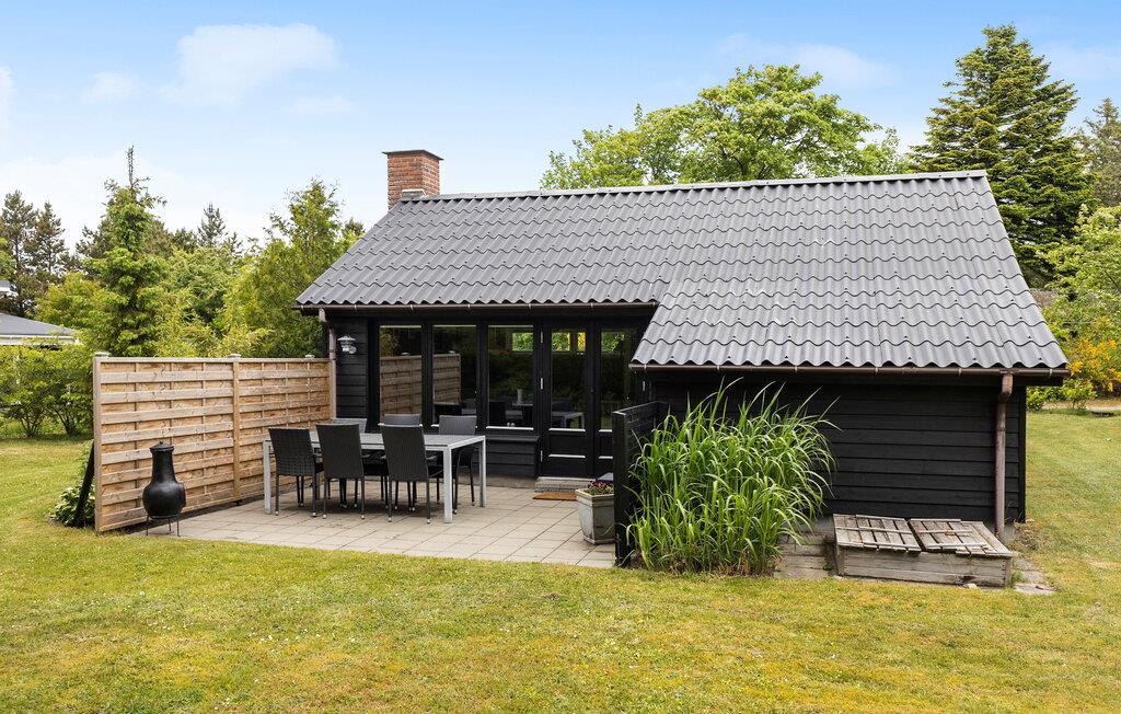 Hyggeligt træsommerhus nær Skaven Strand med brændeovn, terrasse og privat have for afslapning i naturskønne omgivelser.