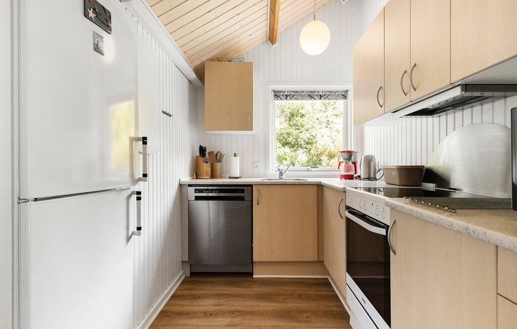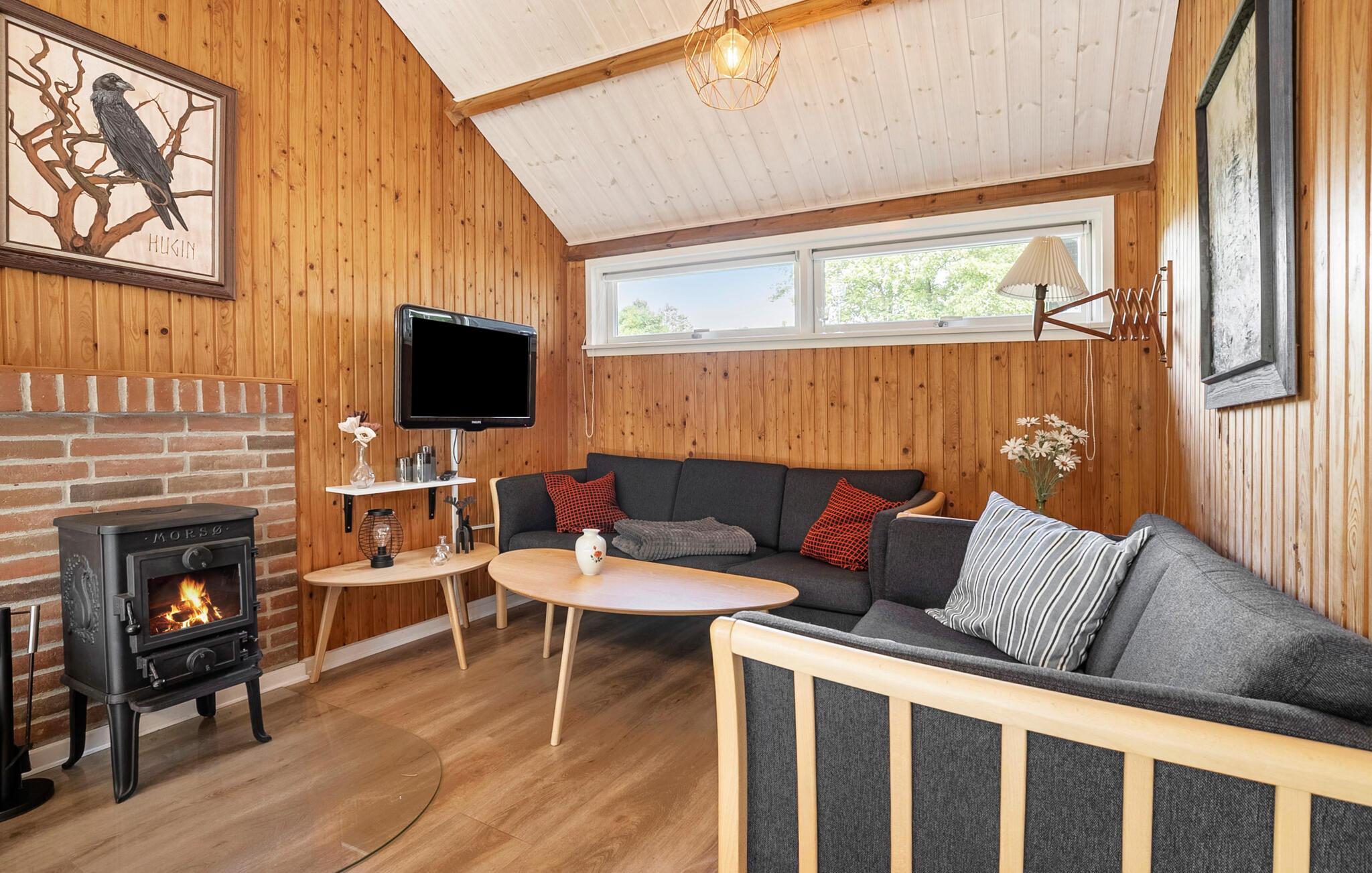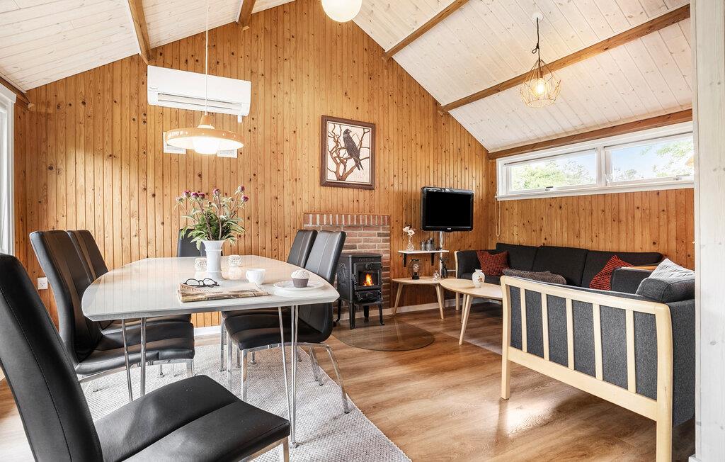 Træpaneler på væggene og smagfulde møbler skaber en virkelig behagelig atmosfære i dette komfortable sommerhus, perfekt til hyggelige timer, hvor I kan koble helt fra hverdagen. Glæd jer til at snakke over fælles måltider i den hyggelige opholdsstue og til muntre spilleaftener på den behagelige sofa, mens brændeovnen knitrer blidt.