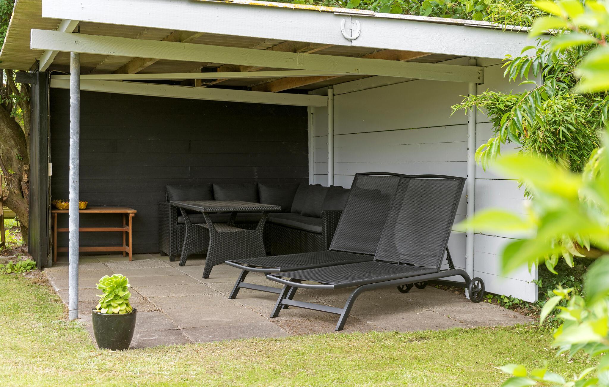Hyggeligt feriehus ved Skaven Strand med overdækket terrasse og tæt på fjorden.
