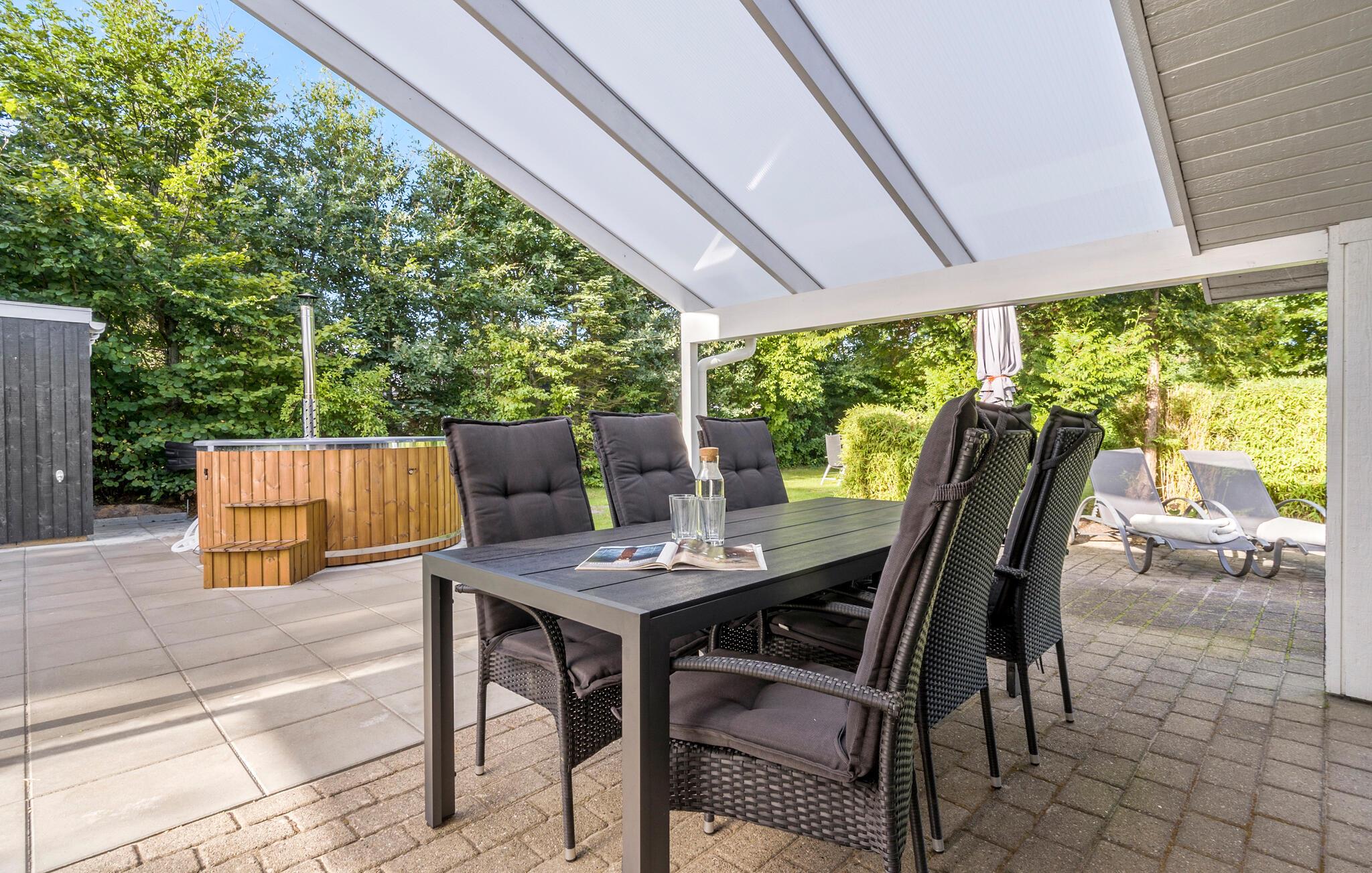 På de varme dage er det bare at trække ud på den overdækkede terrasse og hygge jer med et glas vin og måske et spil kort. Skal I gøre det ekstra godt for jer selv, kan I glide ned i de varme bobler i spabadet og runde aftenen af under en klar stjernehimmel.