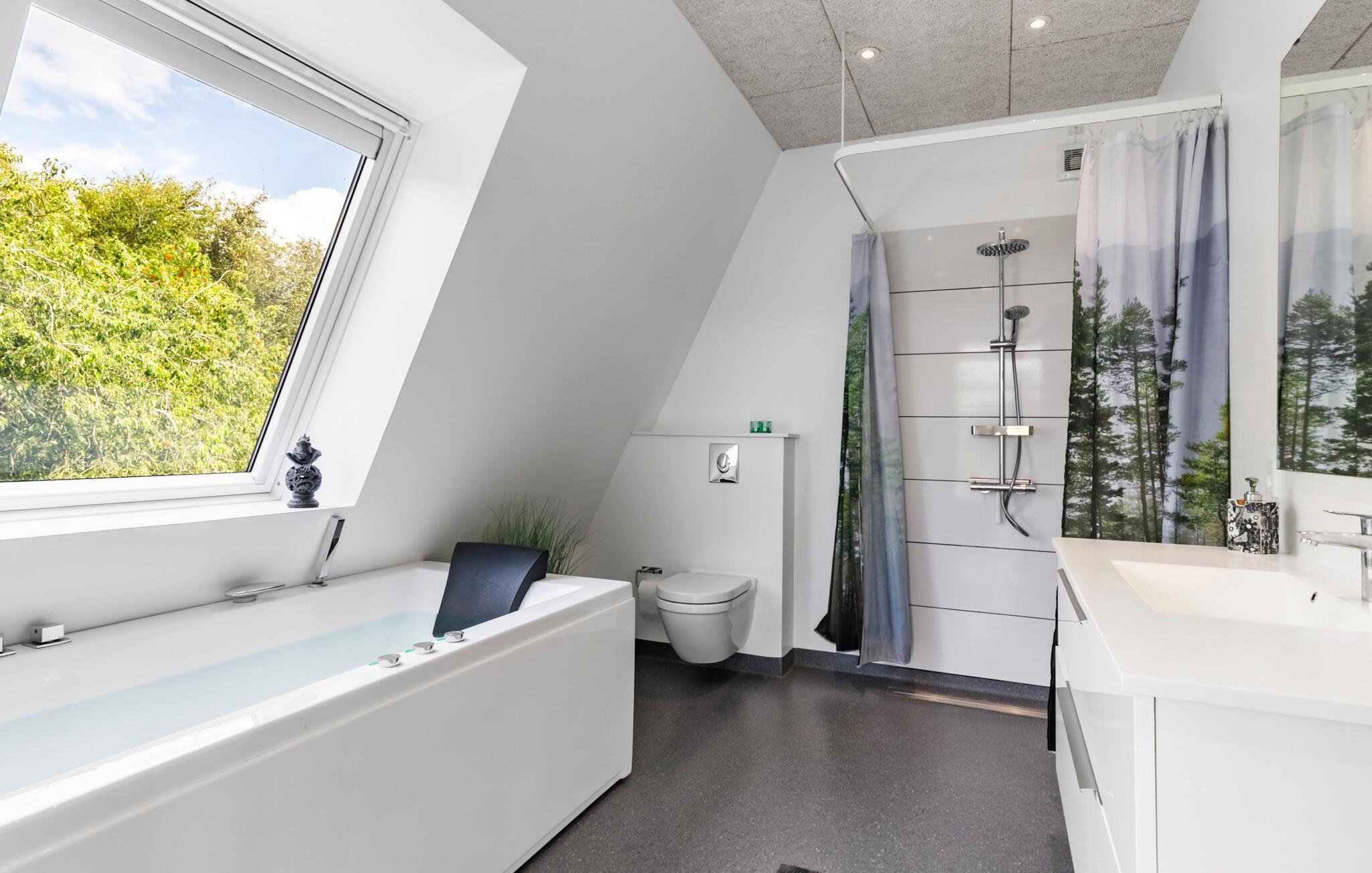 Hyggeligt feriehus nær Skaven Strand med panoramaudsigt, spabad og privat have til afslapning og naturoplevelser.
