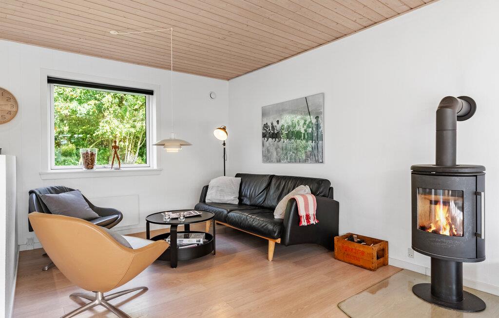 Glæd jer til jeres næste ferie i dette feriehus, nogle få minutters gang fra stranden. Ovenpå finder I en rummelig stue med panoramavinduer, der tilbyder udsigt over området. Gør jer komfortable i sofaen eller nyd udsigten helt ned til havet fra den tilstødende tagterrasse. I stueetagen inviterer endnu en stue med brændeovnjer til at tilbringe hyggelige timer. Det praktisk udstyrede køkken giver jer mulighed for at lave mad til familie og venner.