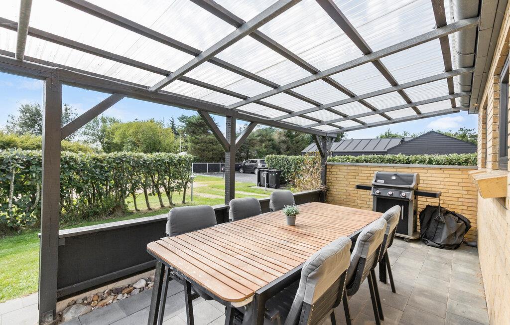 Udnyt de forskellige udendørsområder til socialt samvær. Tag plads på den overdækkede terrasse med det store spisebord og grill eller slap af i det hyggelige loungeområde.