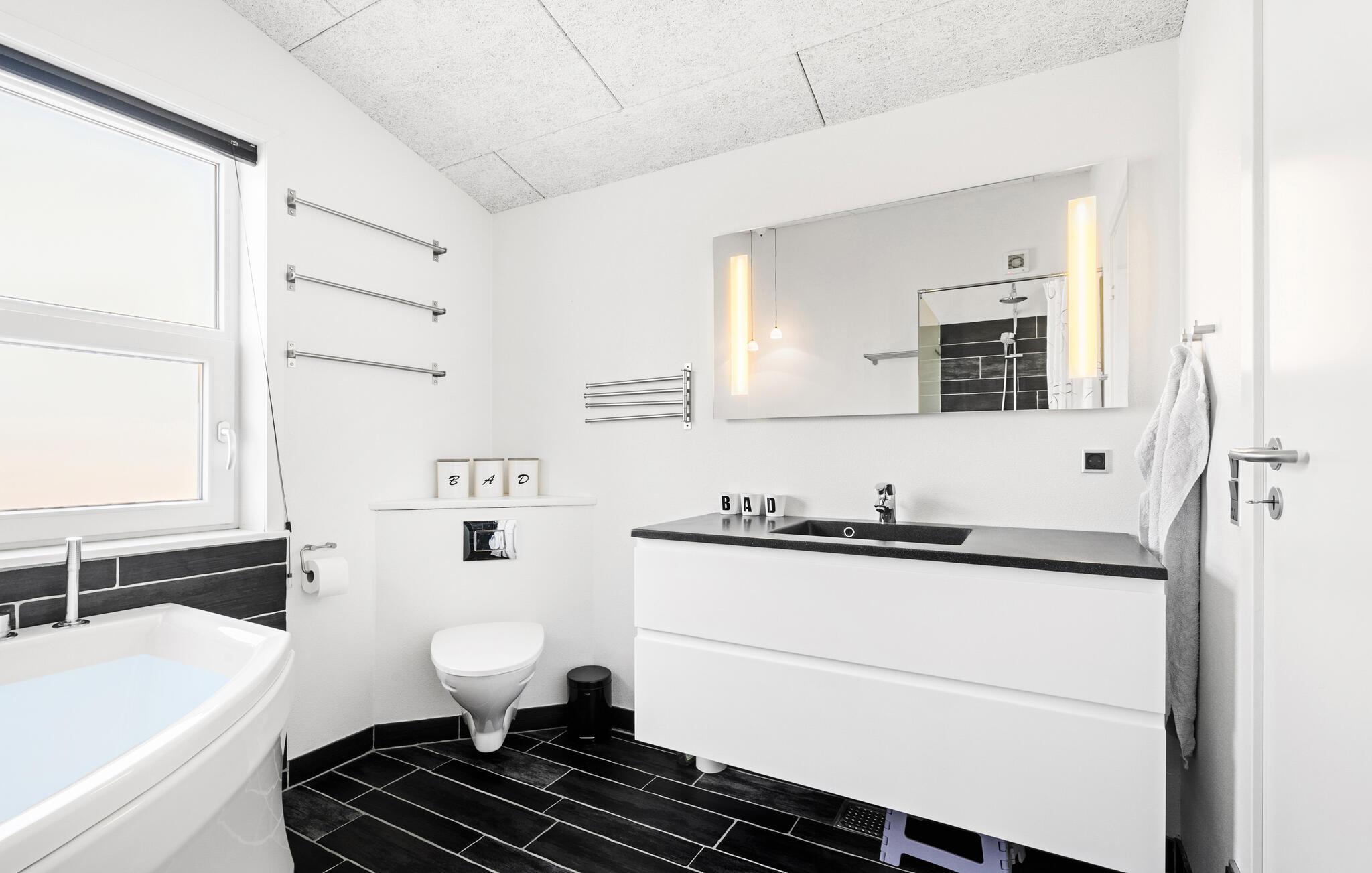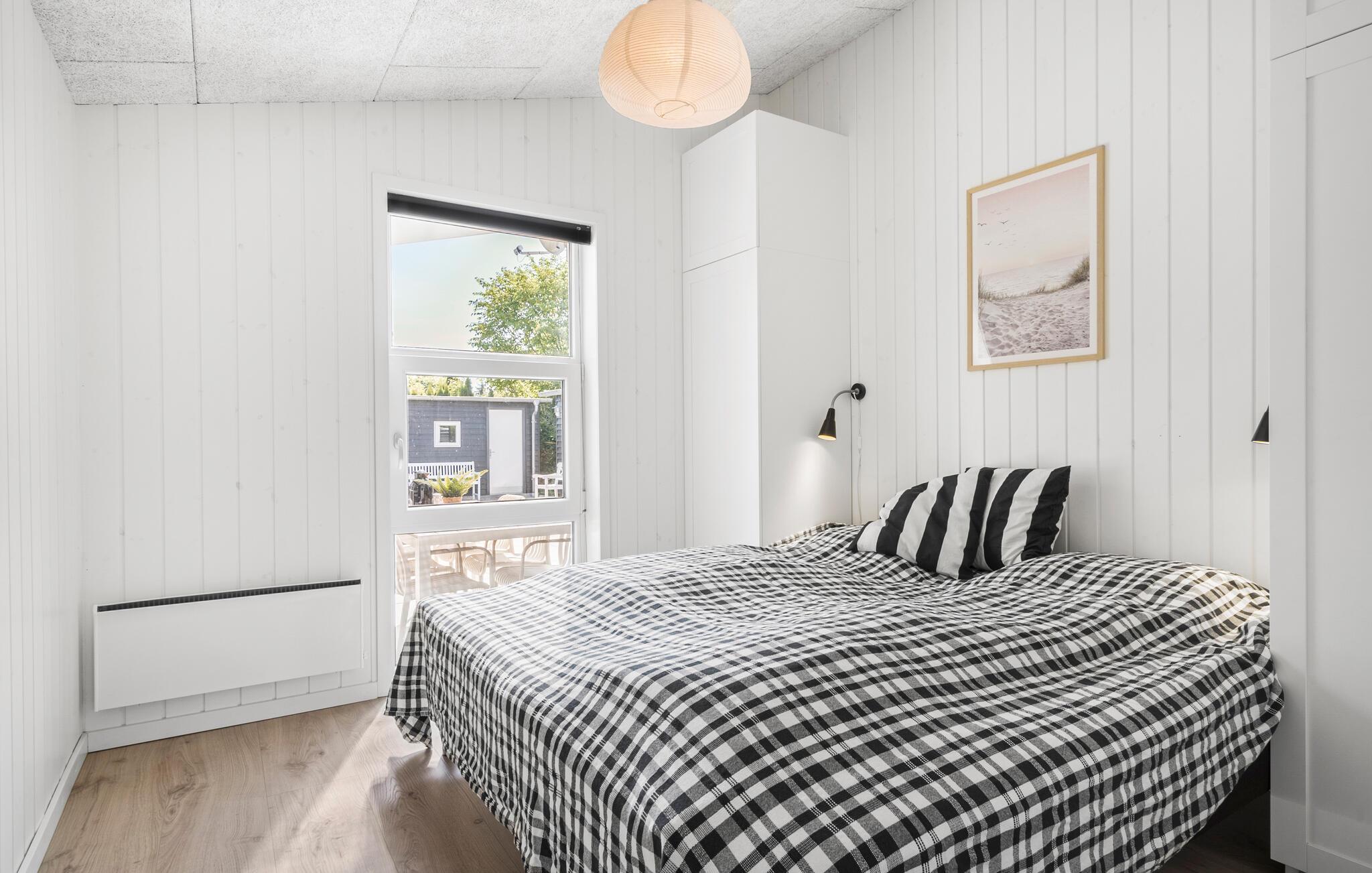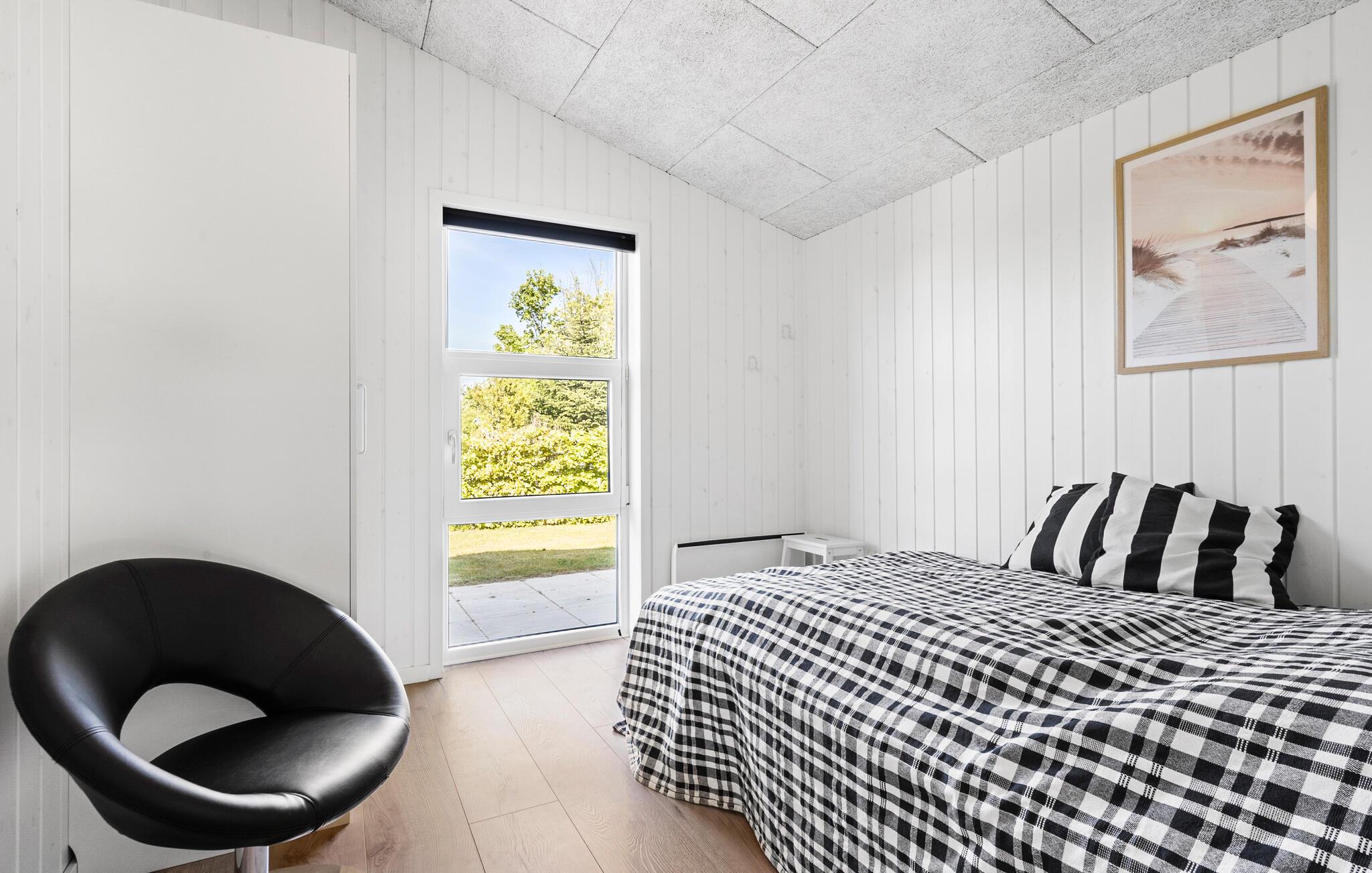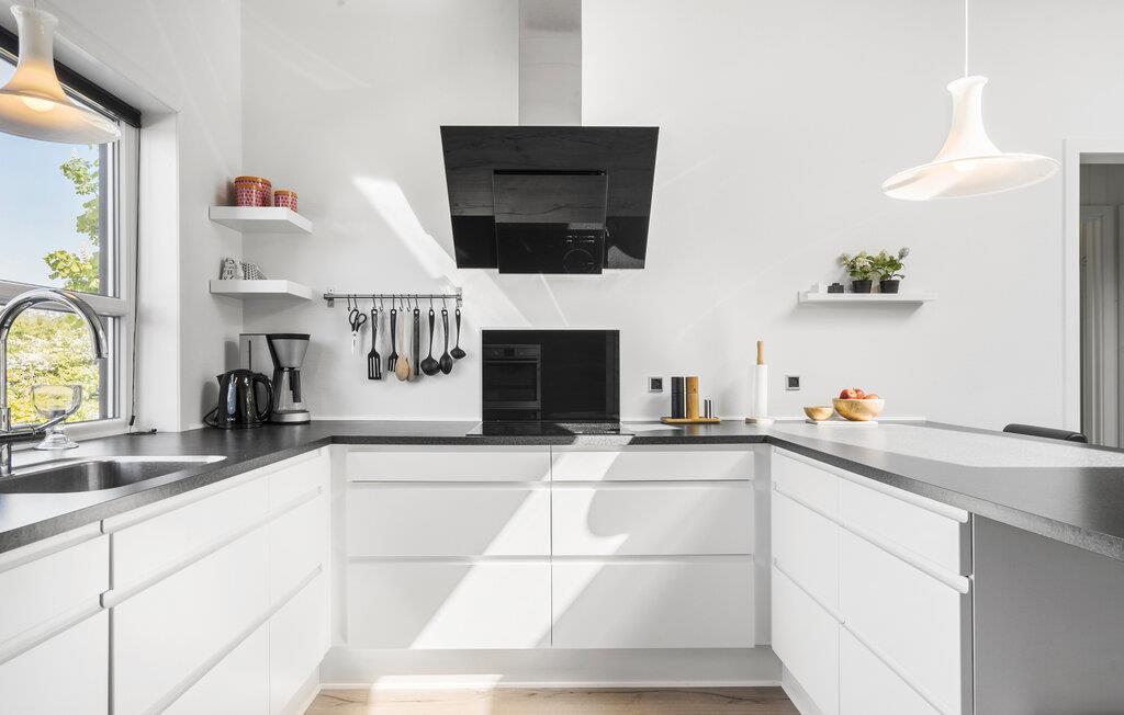 En rolig beliggenhed, stilfuldt interiør og rummelige rammer - her får I de bedste betingelser for nogle afslappende dage med familie eller venner. Tilbered lækre retter sammen i det åbne køkken. Den tilstødende spiseplads i den lyse opholdsstue lægger op til en masse hyggestunder. Nyd udsigten til den dejlige have gennem de store vinduespartier og læn jer tilbage i det komfortable sofahjørne. Efter en lang dag på farten kan I slappe af i spabadet på badeværelset og lade batterierne op til flere oplevelser.