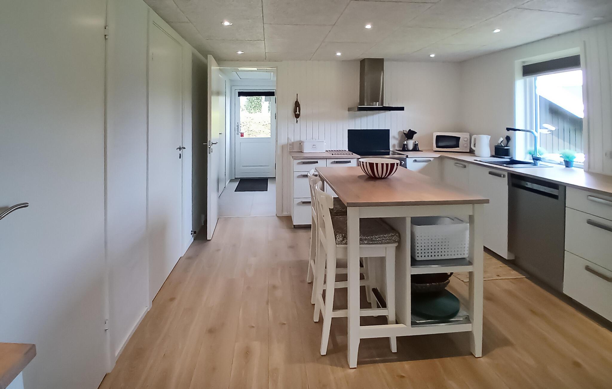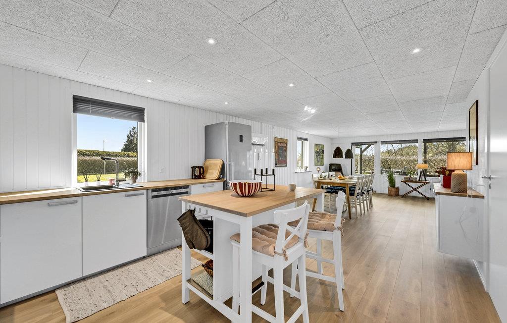 Hold en afslappende ferie i dette indbydende hus, der ligger nogle få skridt fra fjorden på en velholdt grund. Stå op til en smuk udsigt over naturen, nyd haven, mens I laver mad, og sæt jer til rette i den attraktive opholdsstue efter en gåtur på stranden. Tænd op i brændeovnen om aftenen og snak længe i den rummelige sofa.