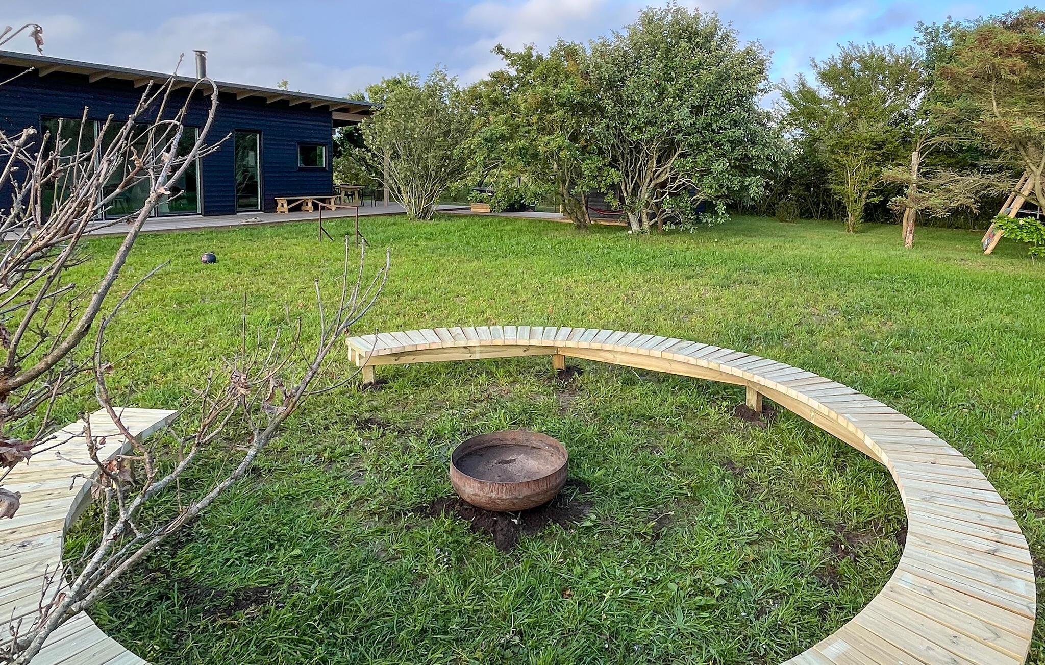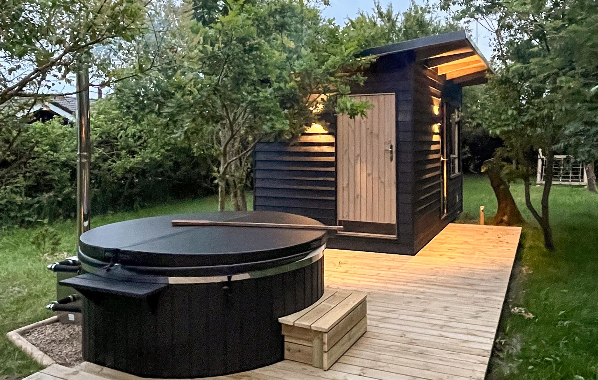 Træd ud i den store, grønne have om morgenen og nyd freden og roen over en velduftende kop kaffe. Snup en frisk dukkert i spabadet eller læn jer tilbage i kølige dage i vildmarksbadet eller saunaen. Find sammen omkring bålstedet om aftenen og bag sprøde snobrød over bålet, mens stjernerne begynder at blinke i skumringen.