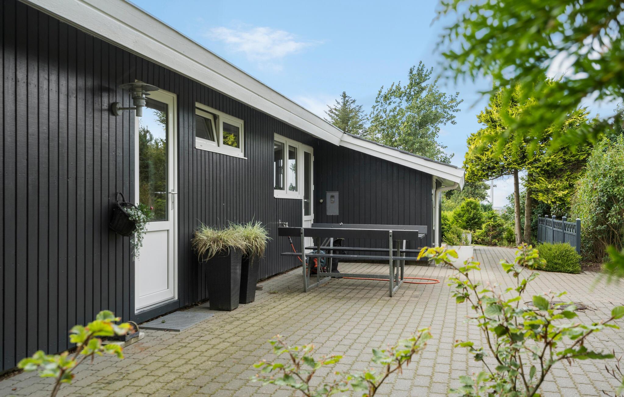 Hyggeligt feriehus ved Skaven Strand med fjordudsigt, have, terrasser og adgang til vandet.